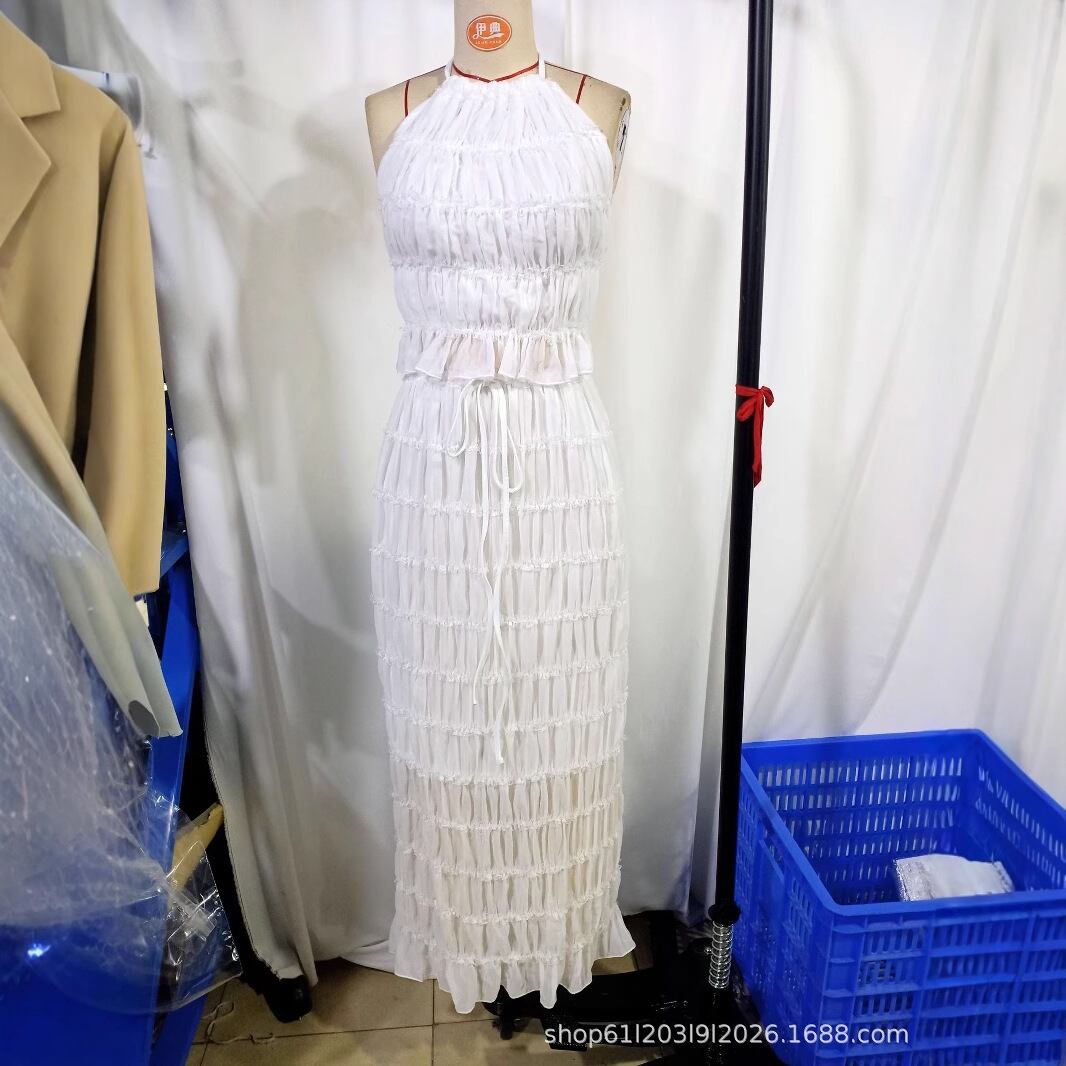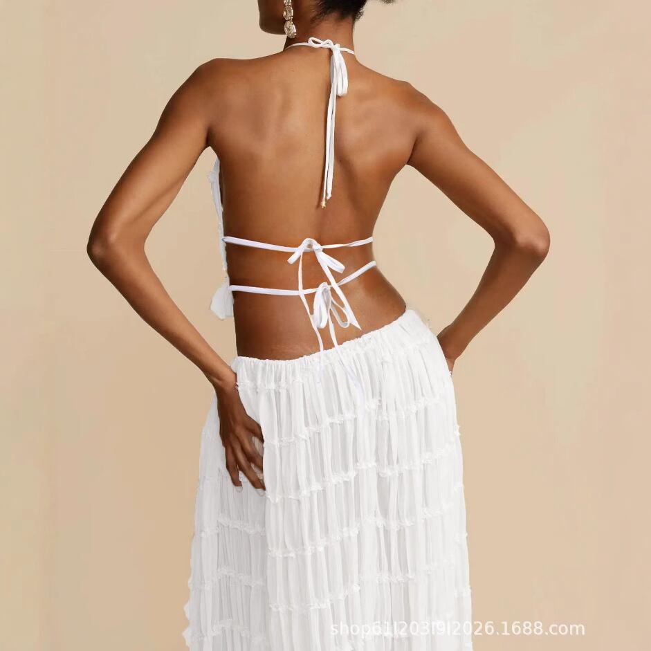 商品名:【大人気】 越境売れ筋 スカートファッション レディース エレガントシフォン レース欧米セクシーホルターネックバックレスロングスカート