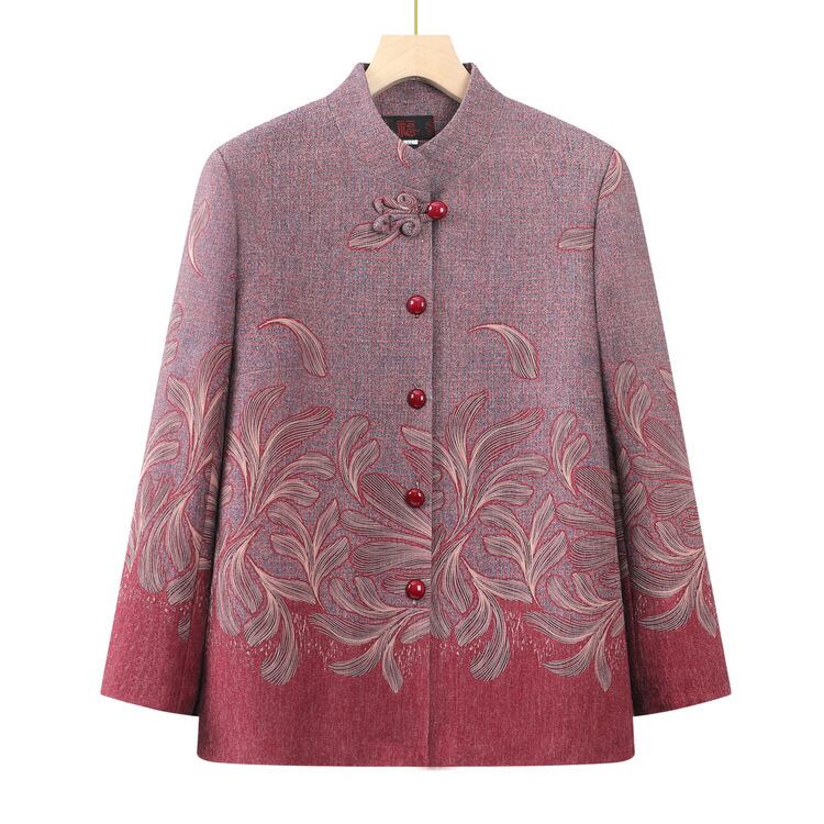 【大人気】おばあちゃんの春と秋の服 長袖ボタン付きコート お母さんのおしゃれな秋服