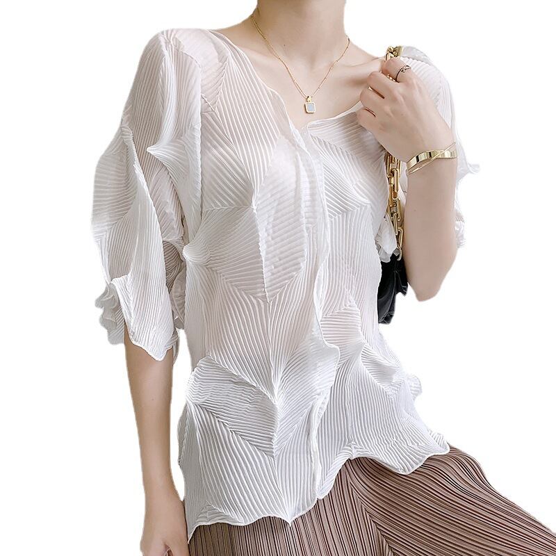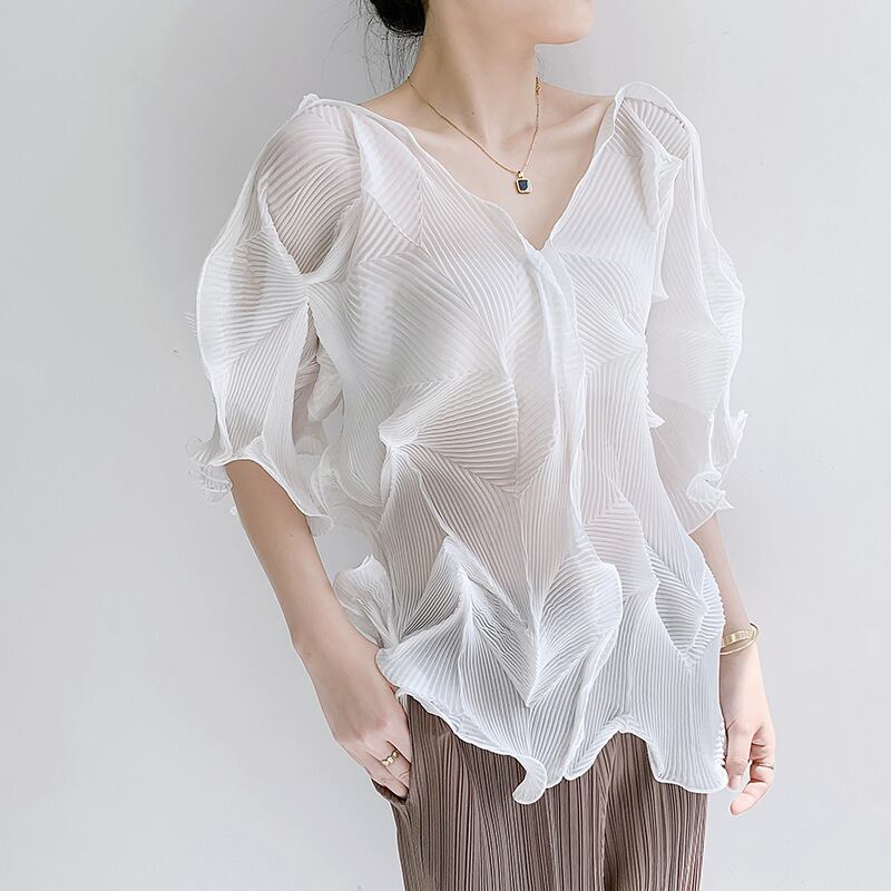 ●大人気のミヤケクラシックフィッシュボーン柄プリーツトップスで、夏にぴったりなファッショナブルでカジュアルなスタイルを実現します!