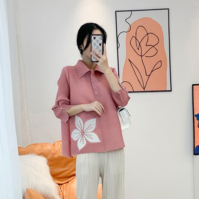 ●大人気の【大人気】プリーツ 2025 春デザイン フラワー カラーブロック ビーズ ファッション Tシャツ レディース スリムフィットは、華やかさと機能性を兼ね備えた一着です!