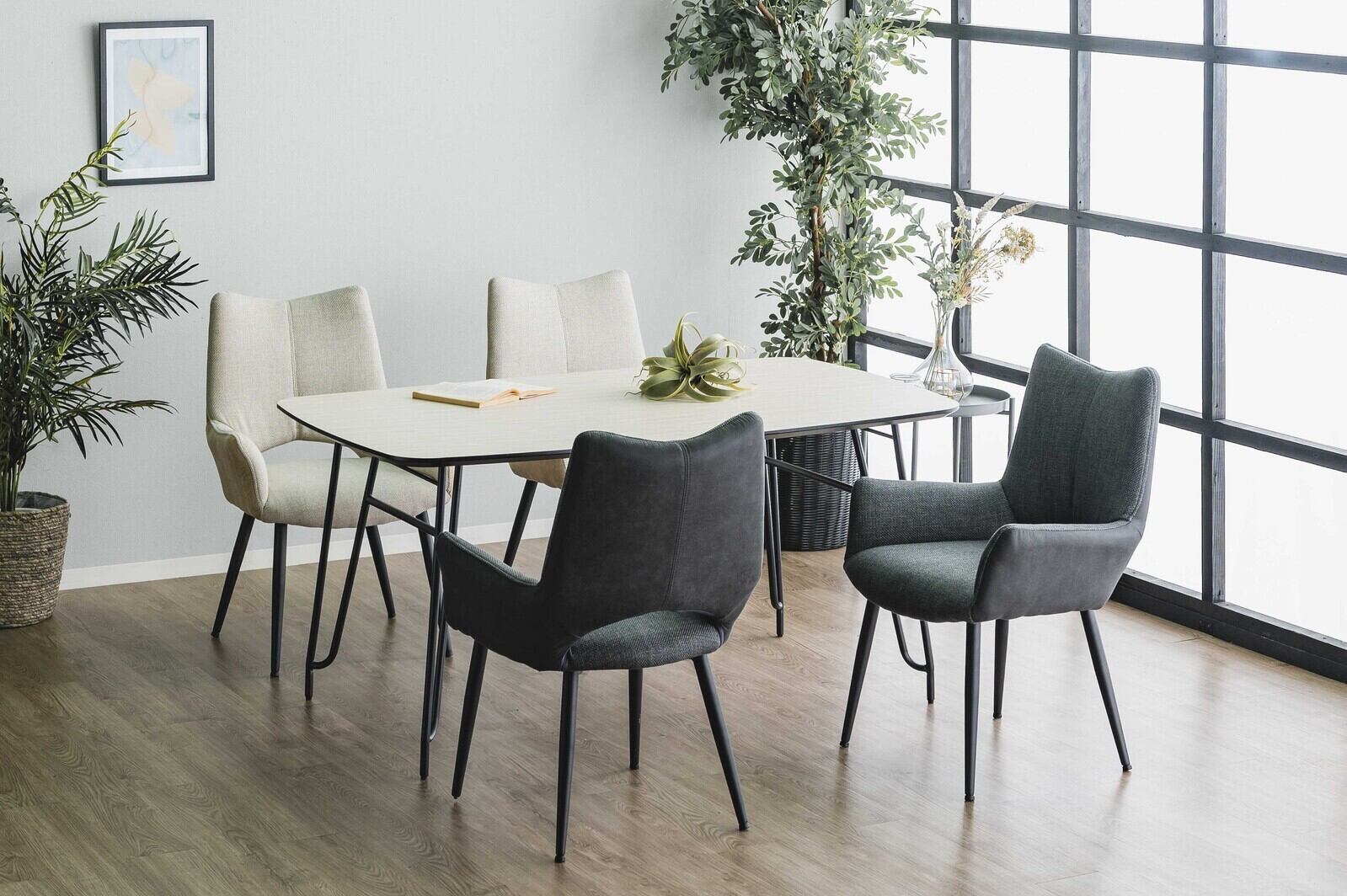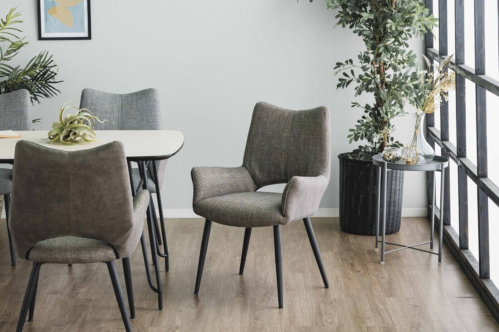 ●肘付仕様でゆったりくつろげるダイニングチェアです。