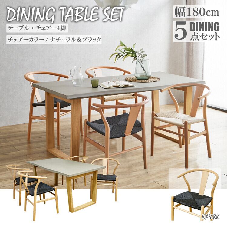 ●180cmコンクリート調テーブル+ノルディックチェアー4脚セット。
