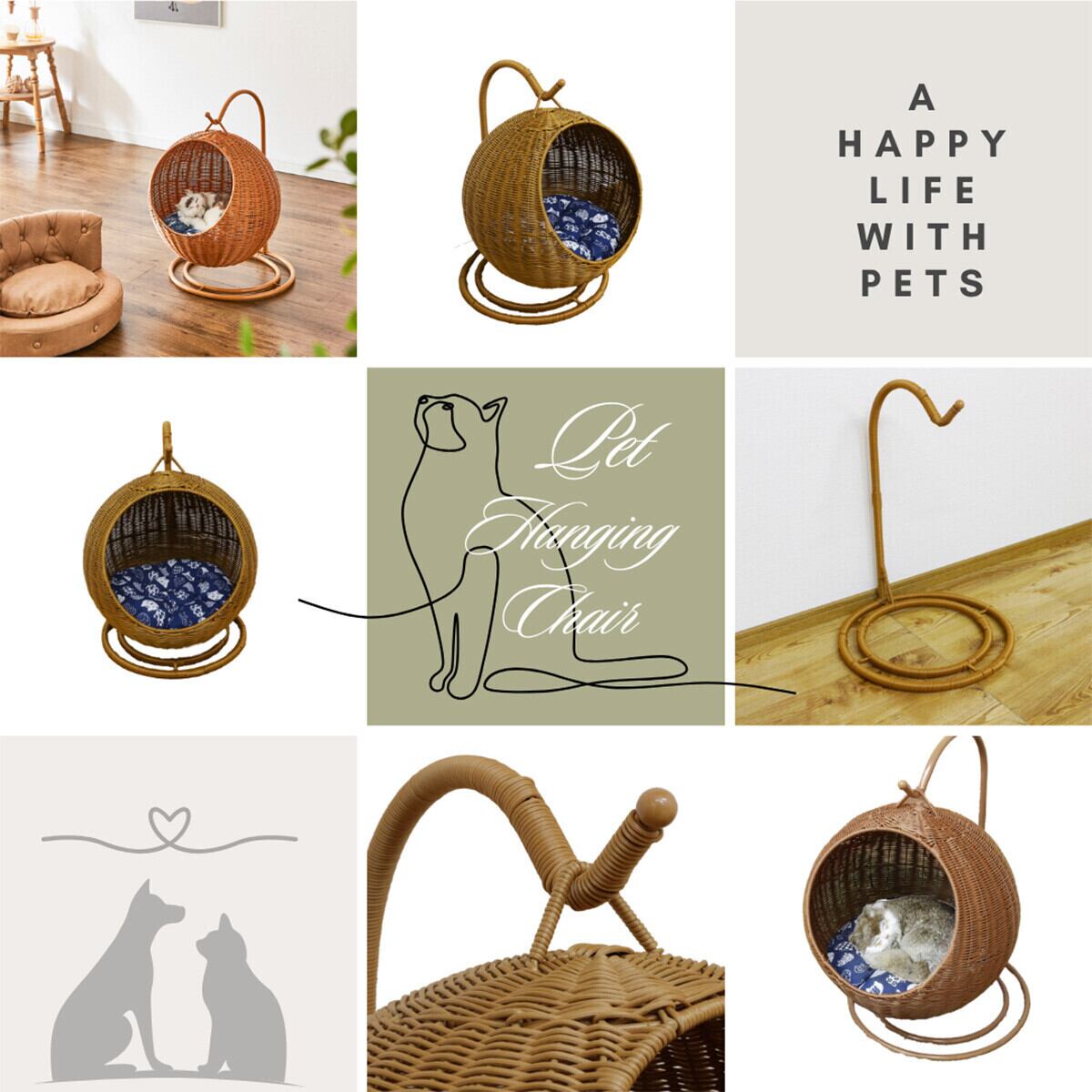ネコちゃんの癒しの空間を与えるペット用ハンギングチェア