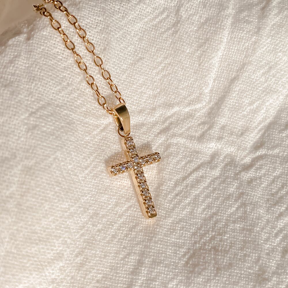 【大人気】クロスネックレス 女性用ヨーロッパ/アメリカ製クロスボーダージュエリーシンプルなマイクロ象眼細工ラインストーン 万能メタルステンレススチールファインチェーン