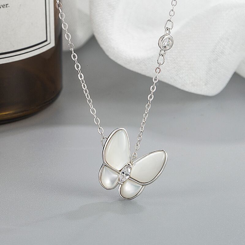 【大人気】S925純銀蝶ネックレスbutterfly necklace銀飾りペンダント白貝母鎖骨女性チェーンins