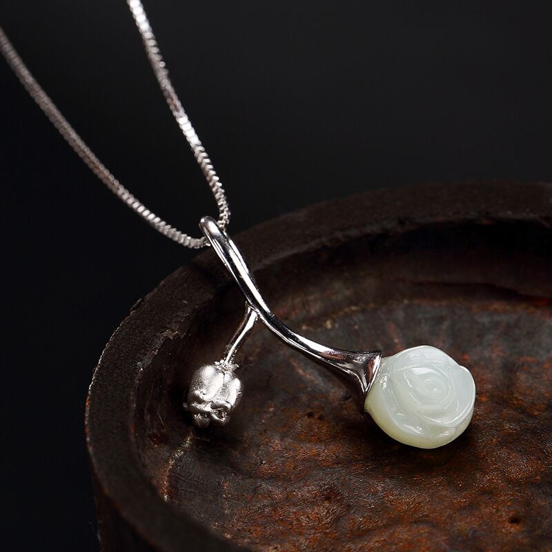【大人気】銀s925 純銀 天然 白玉モザイクバラペンダント 女性