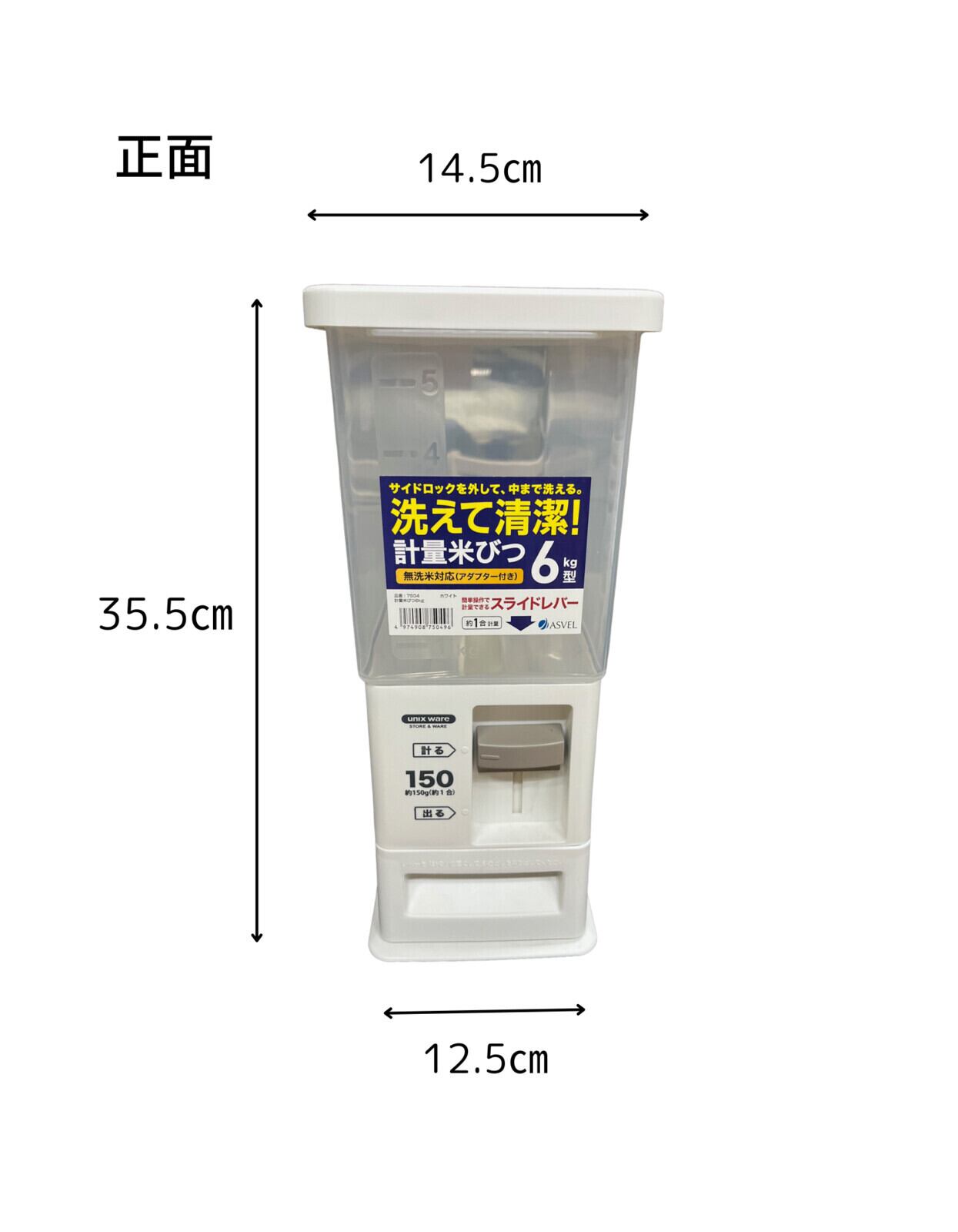 無洗米にも対応した便利な米びつ付。幅15×奥行35×高さ36㎝のコンパクトな設計で、省スペースにも最適。キャスター付きで移動も簡単に行えます。レバーを引くだけで1合分の計量が可能になります。