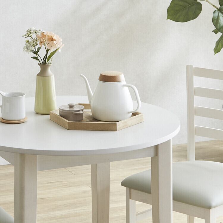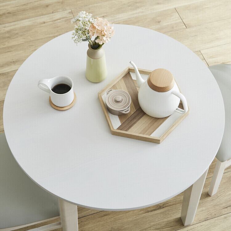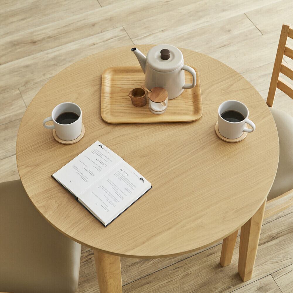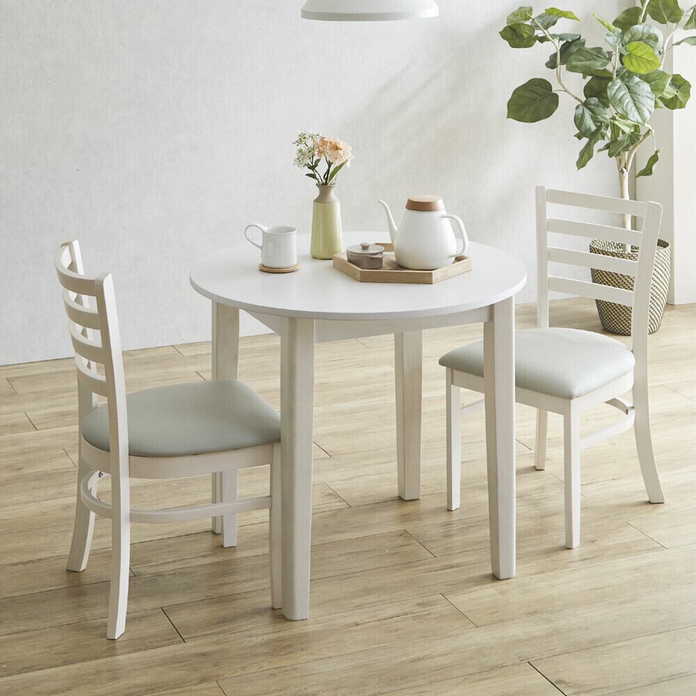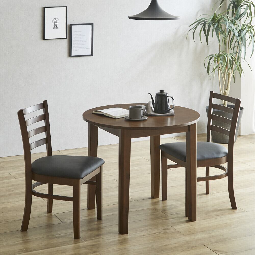 テーブルは天然木突板仕様のダイニング円卓3点セット!