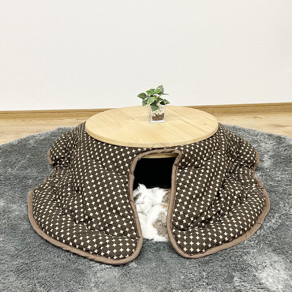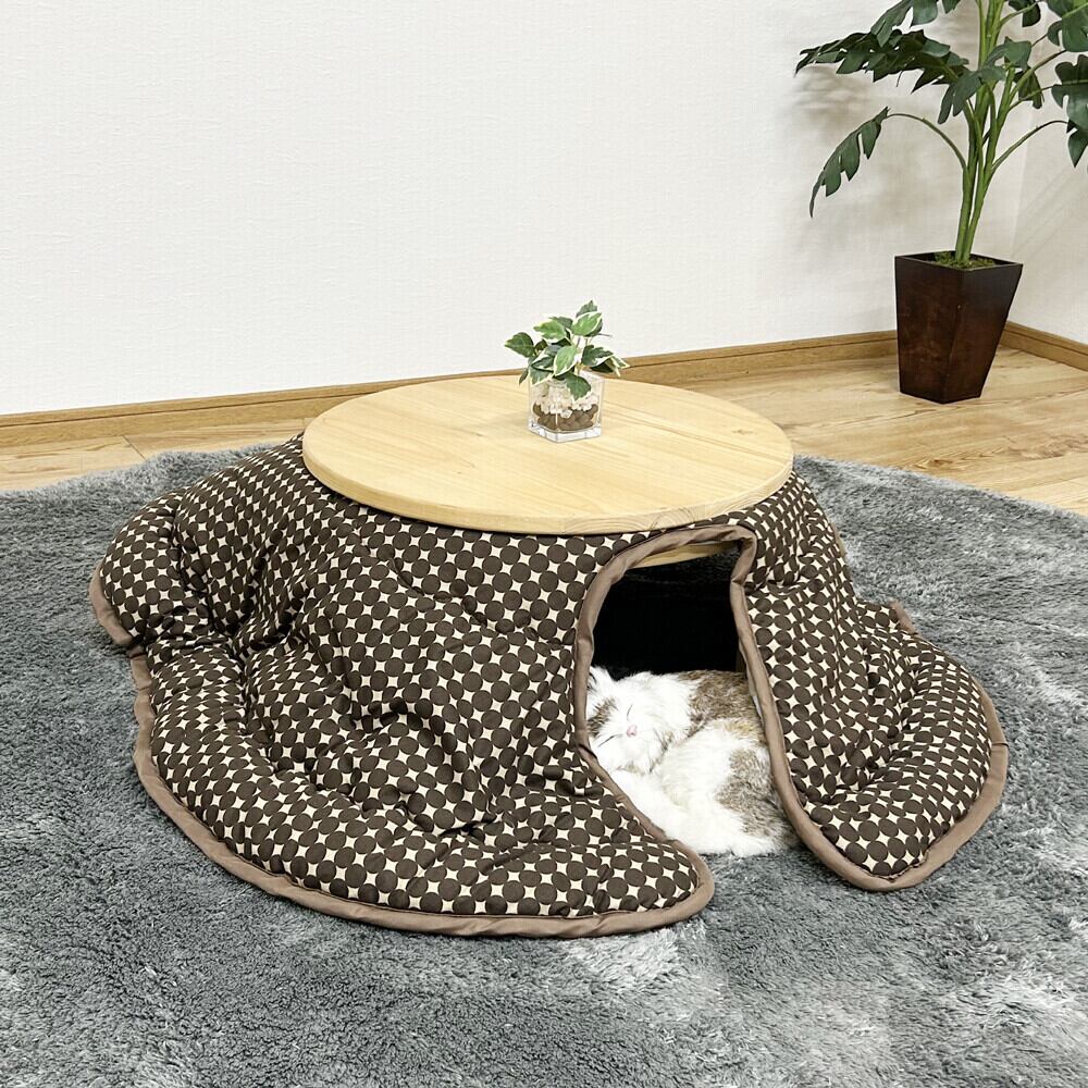 国産ヒノキ材、国産布団仕様の猫こたつ2点セット!