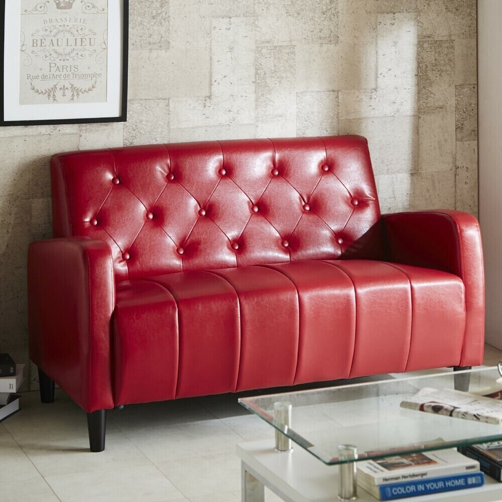 バイキャスト風PVCを使用!座面ポケットコイル入り2Pレトロソファー!