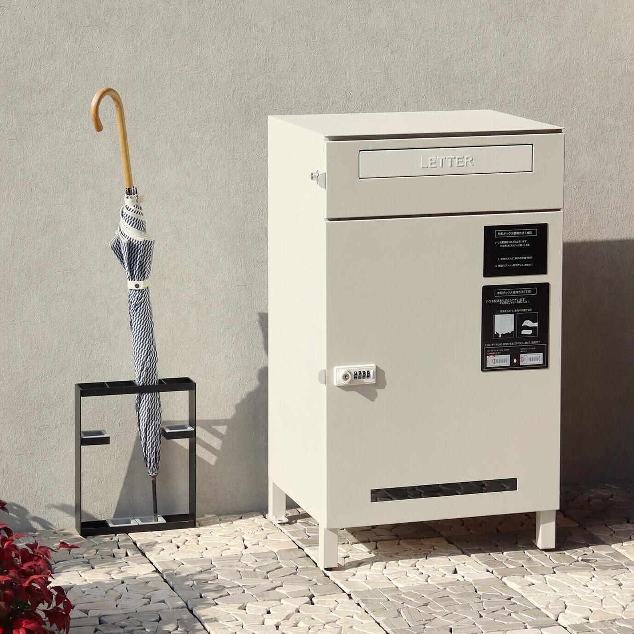 1台の商品で、郵便ポストとしても、宅配ボックスとしても使用可能なアイテムです。上段は、プッシュキーで簡単に鍵の開閉が可能で、防犯面にも安心です。また、スペアキーが1本付属しております。下段は、ダイヤルロックとシリンダー錠(ダイヤル解錠番号が分からなくなった際の緊急用)でドアの開閉が可能です。下段のダイヤルロックは、鍵を施錠した際、鍵を解錠した際にダイヤル番号が"0000"にリセットされ、設定したダイヤル番号の漏洩の心配がありません。上段の郵便投函口は、ゆうパケットポストや、ネコポスが投函可能です。キー(上段用、下段用)、アンカーボルト、キーフック付印鑑ケース×2、宅配業者用の配達マニュアル(マグネット式でお好きな場所に貼付け可)×2(上段用、下段用) が付属しており、お客様で追加でご用意頂くものは特に必要なく、すぐにご使用頂けます。玄関を明るく彩るブルーグレーと、くすんだベージュのグレージュの2色よりお選び頂けます。投函口と取っ手はホワイト色でアクセントとなっております。ガルバナイズド処理を施しているため、錆びの発生がしにくい仕様となっております。投函口には、LETTRの文字がエンボス加工で立体的に施されています。下段の宅配可能最大サイズは、約W46.0×D36.2×H54.9cmと、非常に大きな宅配物も配達可能となります。印鑑ケースは2個付属しており、上段の鍵もプッシュキーを使用しているので、上段も宅配ボックスとしての使用も可能です。