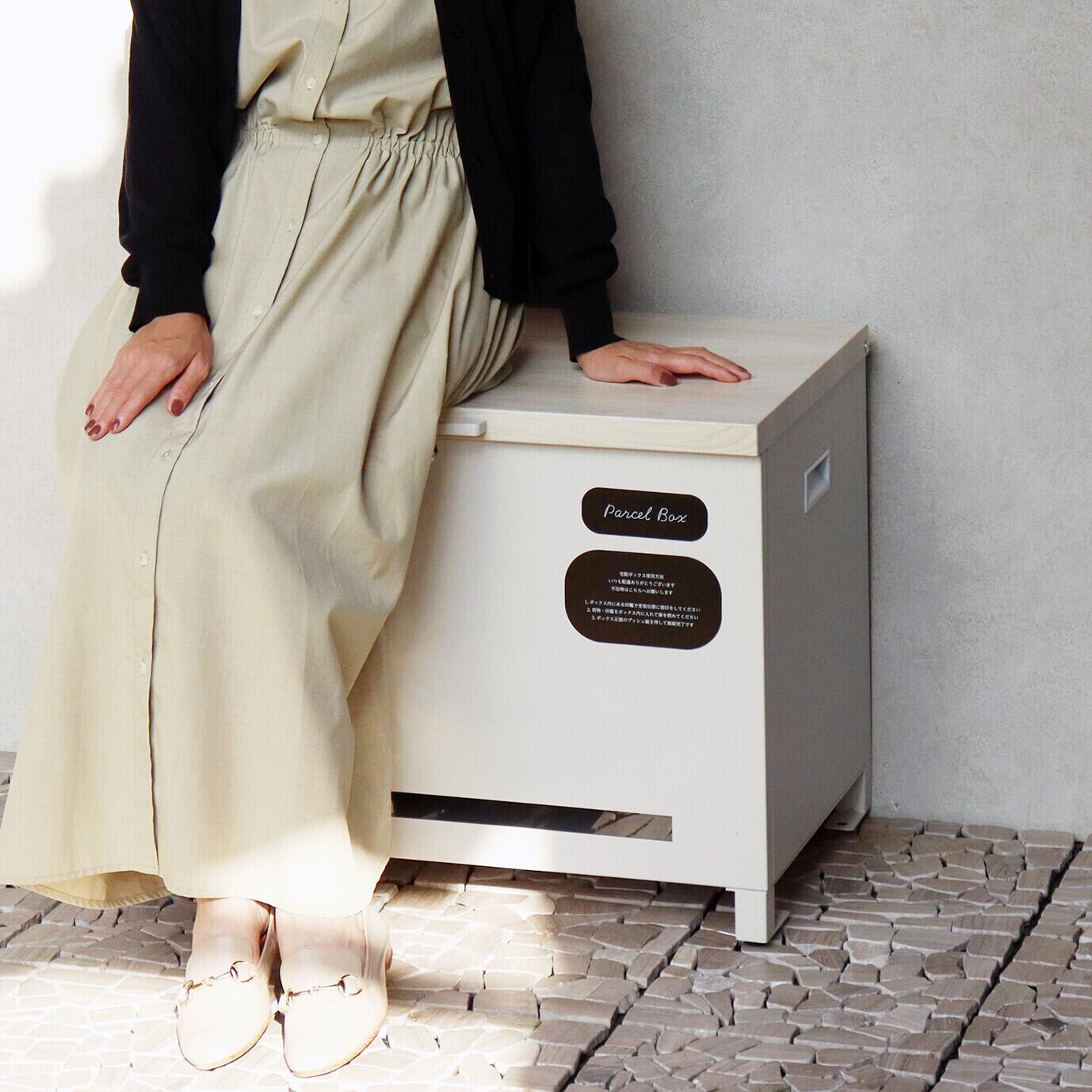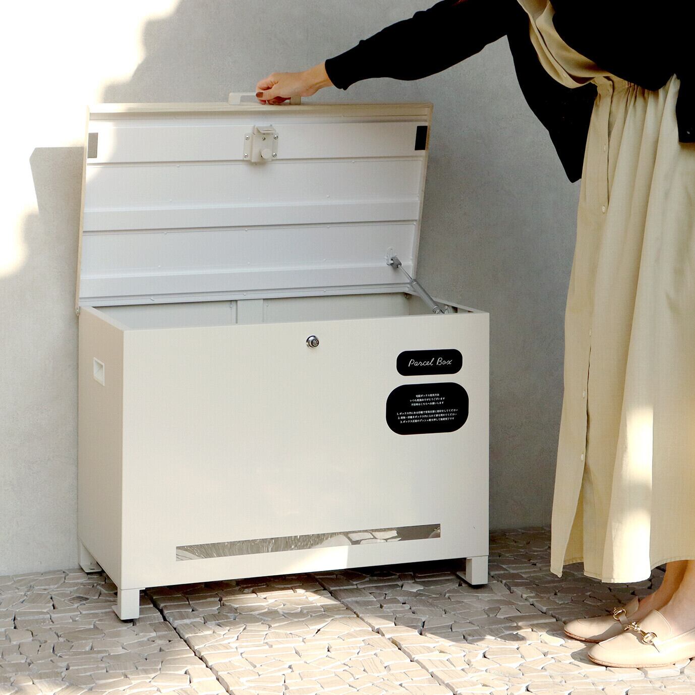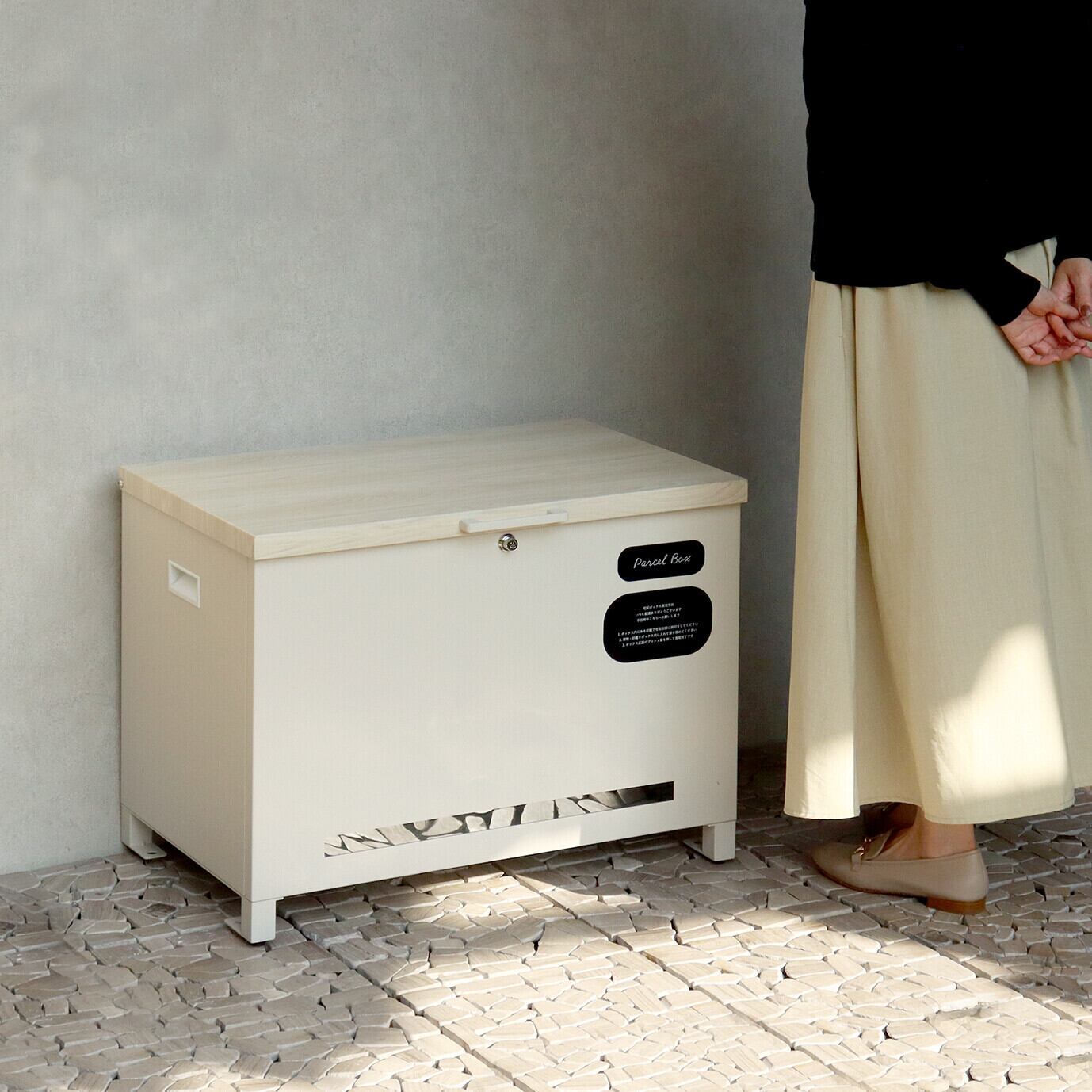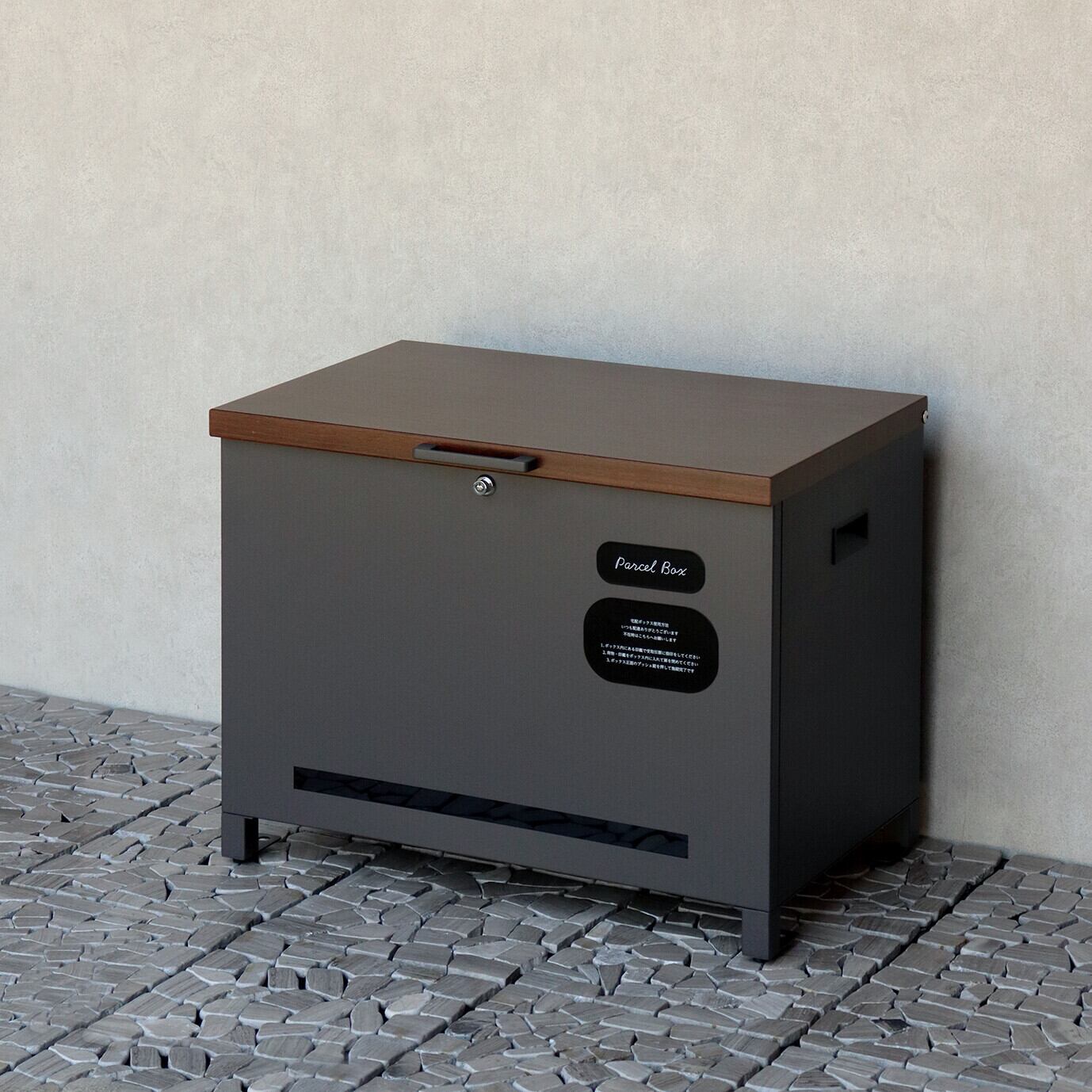 ベンチとしても使用可能な宅配ボックスになります(天面耐荷重:約80Kg)。鍵は、プッシュキーで簡単に鍵の開閉が可能で、防犯面にも安心です。また、スペアキーが1本付属しております。閉じ込め防止機能付き:鍵は内側から閉じ込め防止レバーで解錠可能となります。万が一、宅配ボックス内に閉じ込められても安心です。ハンドル付き:商品の左右側面にハンドルが付いており、持ち運び時に便利です。商品の正面下部にスリット窓付きで、扉を開けなくても荷物の確認が可能です。収納ボックスとしてだけでなく、子供の遊び道具、アウトドア用品、灯油缶、洗車用品、ごみの保管など、多用途でのご使用が可能な商品です。取出口サイズが約W60.4×D36.2×H43.7cmと非常に広く、大きな荷物や同時に複数の荷物の配達が可能な宅配ボックスです。キー、アンカーボルト、キーフック付印鑑ケース、宅配業者用の配達マニュアルが付属しており、お客様で追加でご用意頂くものは特に必要なく、すぐにご使用頂けます。木目調デザイン:商品の天面部は木目調仕上げで、特徴のあるデザインとなっております。カラーは、濃いグレーのダークグレーとブラウン木目の組み合わせと、お家の外壁に合わせやすいグレージュ色とホワイト木目の組み合わせからお選び頂けます。「本体」と「取っ手パーツ」、「脚パーツ」のみをボルトで固定する簡易組立の商品となります。ガルバナイズド処理を施しているため、錆びの発生がしにくい仕様となっております。