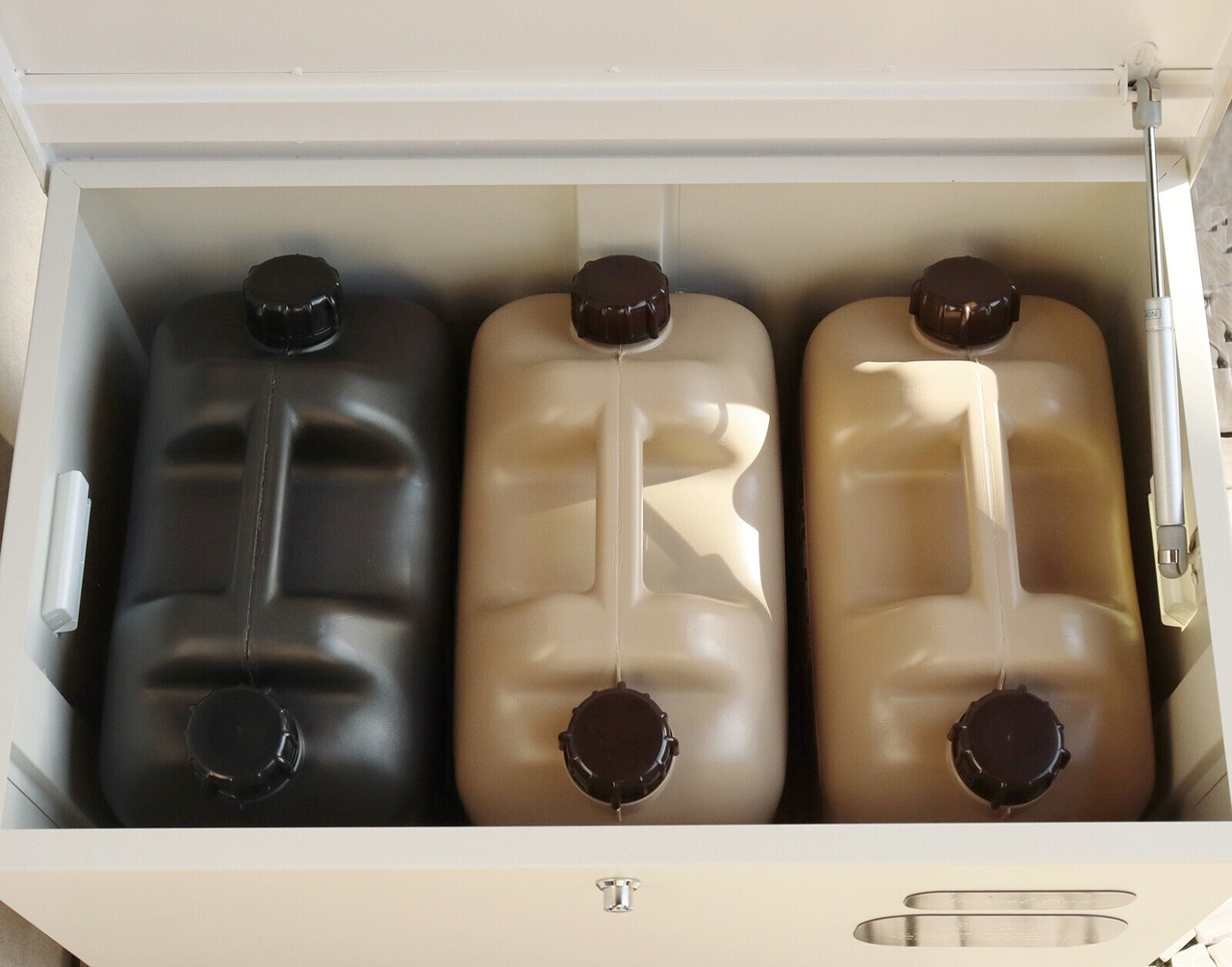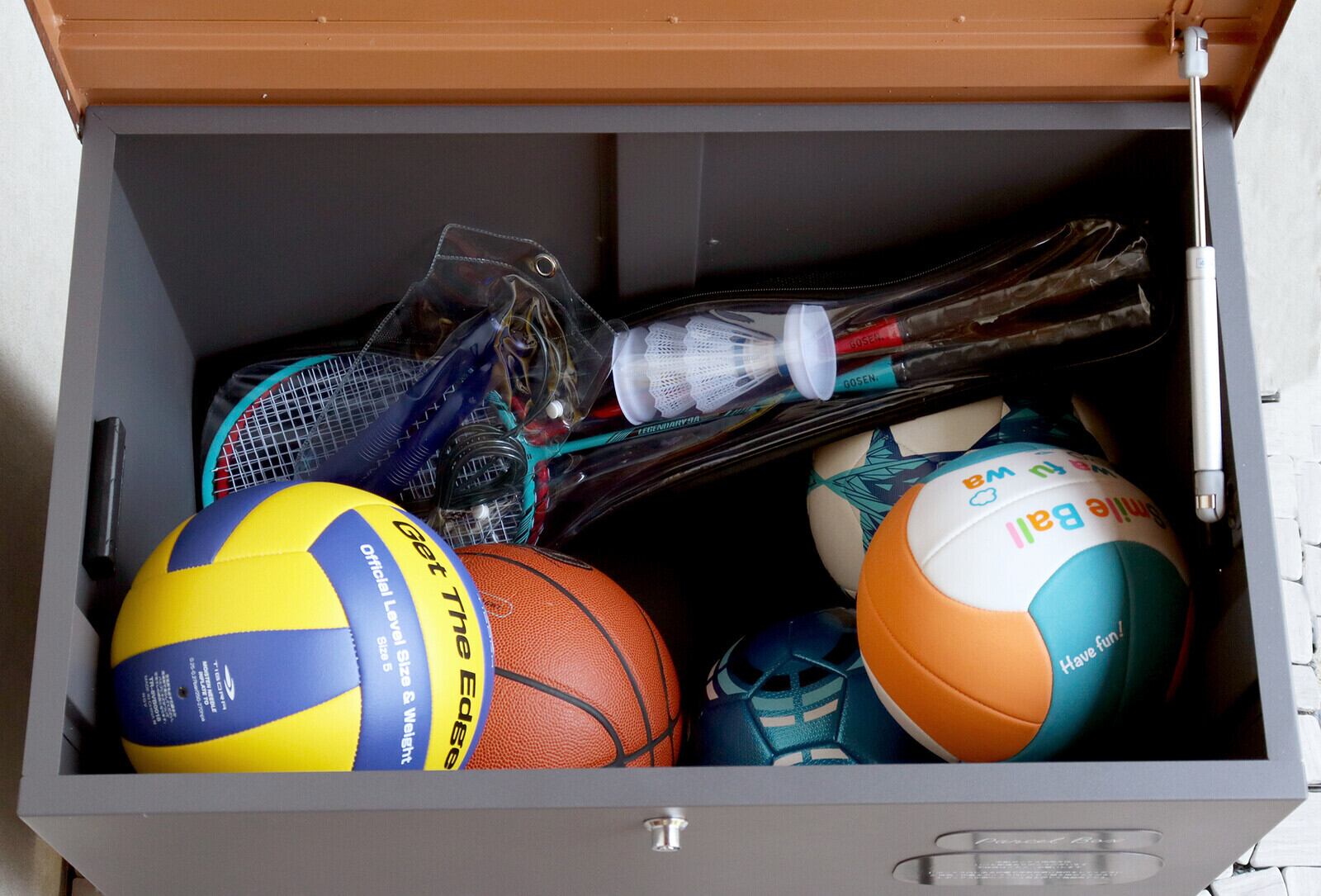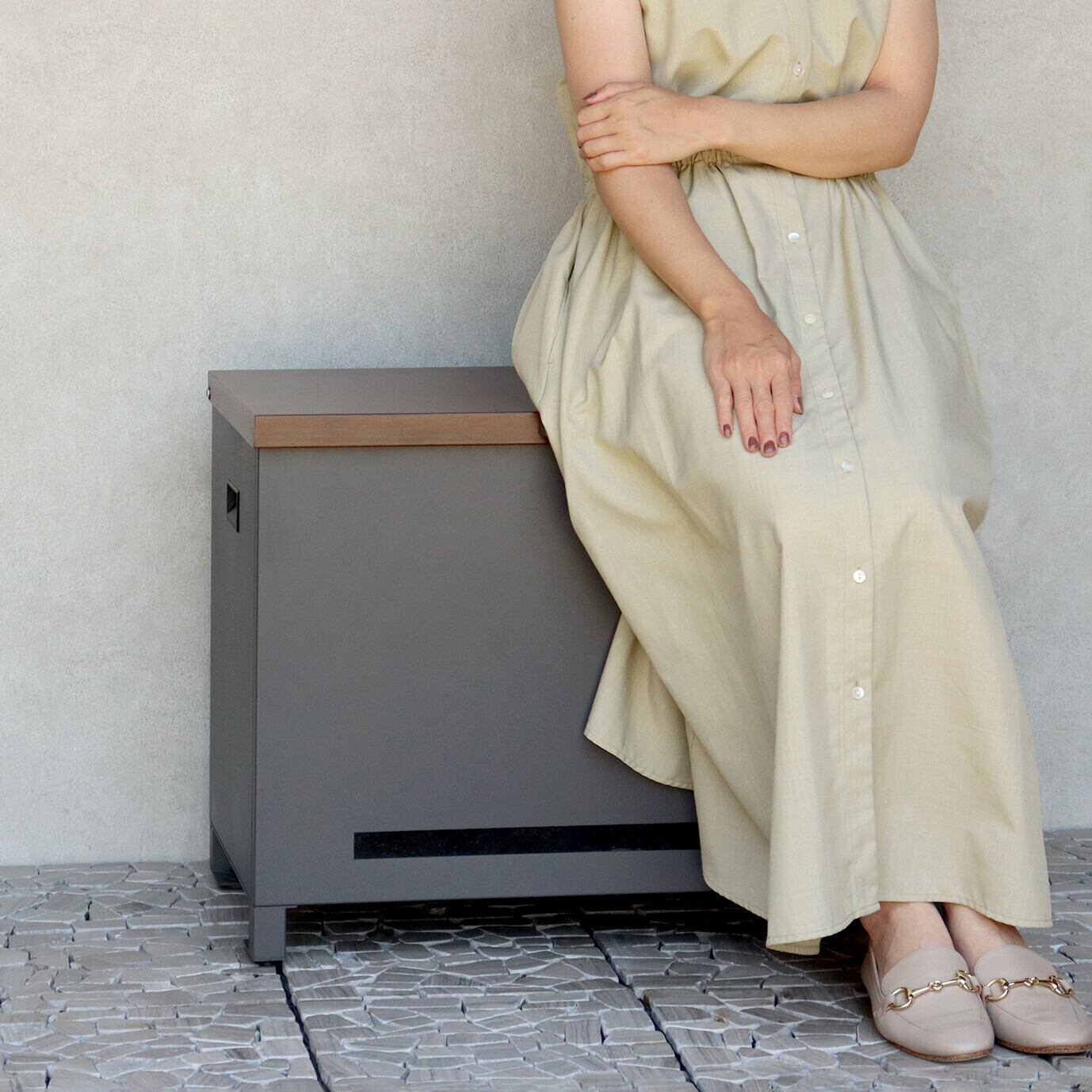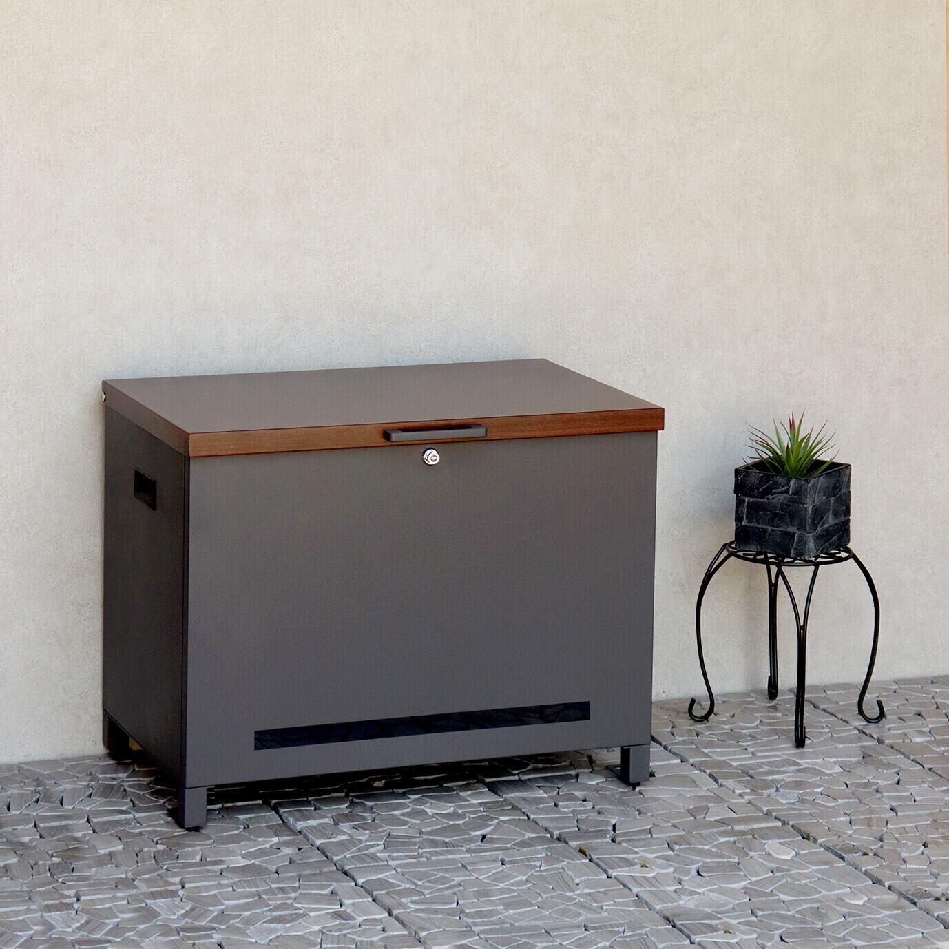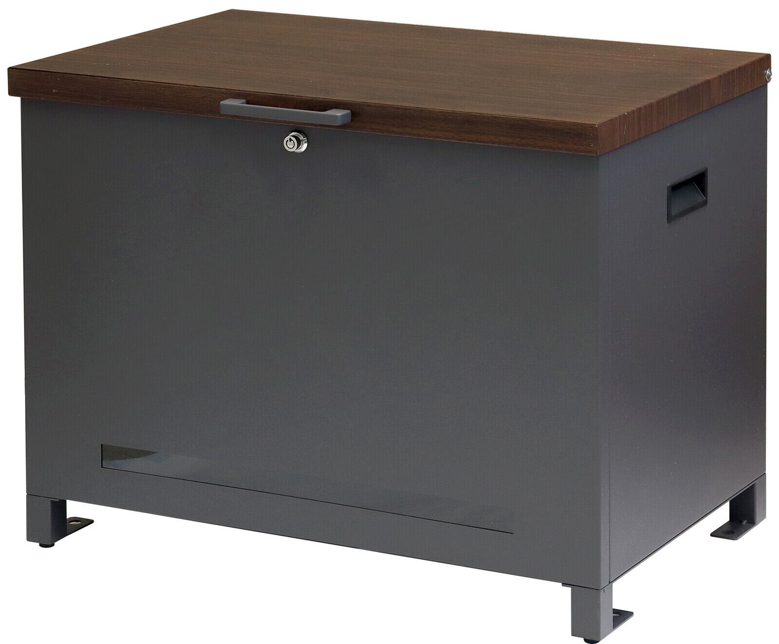ベンチとしても使用可能な宅配ボックスになります(天面耐荷重:約80Kg)。鍵は、プッシュキーで簡単に鍵の開閉が可能で、防犯面にも安心です。また、スペアキーが1本付属しております。閉じ込め防止機能付き:鍵は内側から閉じ込め防止レバーで解錠可能となります。万が一、宅配ボックス内に閉じ込められても安心です。ハンドル付き:商品の左右側面にハンドルが付いており、持ち運び時に便利です。商品の正面下部にスリット窓付きで、扉を開けなくても荷物の確認が可能です。収納ボックスとしてだけでなく、子供の遊び道具、アウトドア用品、灯油缶、洗車用品、ごみの保管など、多用途でのご使用が可能な商品です。取出口サイズが約W60.4×D36.2×H43.7cmと非常に広く、大きな荷物や同時に複数の荷物の配達が可能な宅配ボックスです。キー、アンカーボルト、キーフック付印鑑ケース、宅配業者用の配達マニュアルが付属しており、お客様で追加でご用意頂くものは特に必要なく、すぐにご使用頂けます。木目調デザイン:商品の天面部は木目調仕上げで、特徴のあるデザインとなっております。カラーは、濃いグレーのダークグレーとブラウン木目の組み合わせと、お家の外壁に合わせやすいグレージュ色とホワイト木目の組み合わせからお選び頂けます。「本体」と「取っ手パーツ」、「脚パーツ」のみをボルトで固定する簡易組立の商品となります。ガルバナイズド処理を施しているため、錆びの発生がしにくい仕様となっております。