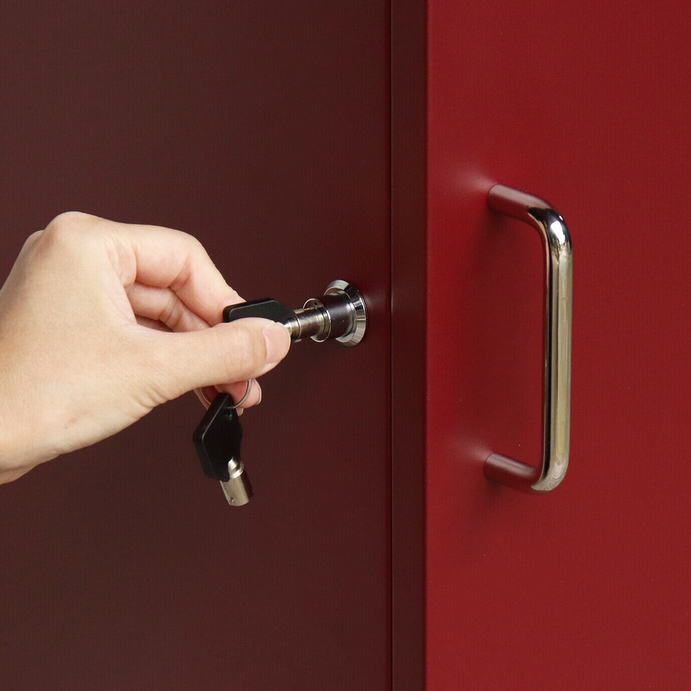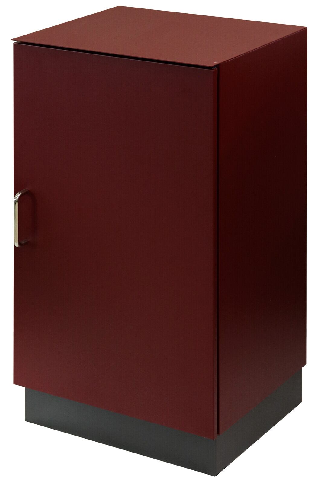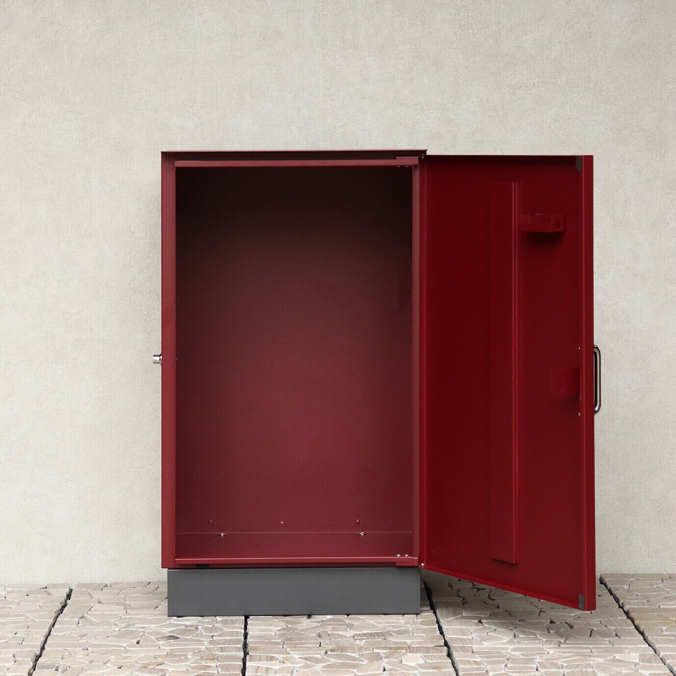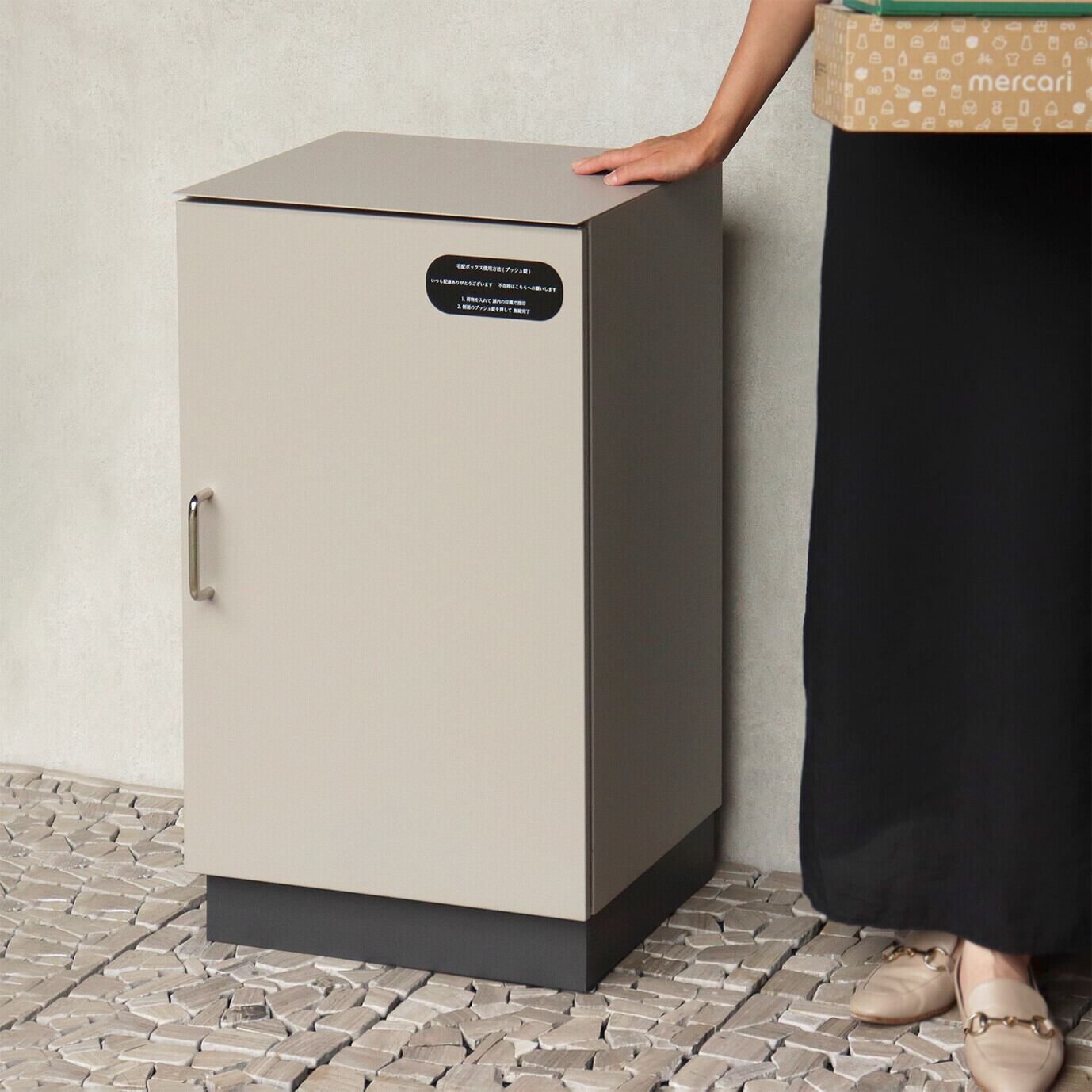 取出口サイズが約W37.3×D32.0×H61.5cmと非常に広く、大きな荷物や同時に複数の荷物の配達が可能な宅配ボックスです。鍵は、プッシュキーで簡単に鍵の開閉が可能で、防犯面にも安心です。また、スペアキーが1本付属しております。向かって左側側面部にスリット窓付きで、扉を開けなくても荷物の確認が可能です。本体と台座で異なる塗装カラーで仕上げており、玄関周りを鮮やかに彩ることのできる商品に仕上がっております。キー、アンカーボルト、キーフック付印鑑ケース、宅配業者用の配達マニュアルが付属しており、お客様で追加でご用意頂くものはなく、すぐにご使用頂けます。本体がボルドー、台座がダークグレーの仕上がりと、本体がライトベージュと、台座がダークグレーの仕上がりの2色展開になります。鏡面仕上げのステンレス製の取っ手を使用しており、デザインのアクセントになっております。「本体」と「台座」のみをボルトで固定する簡易組立の商品となります。台座部は、付属のアンカーボルトでの固定か、台座部にレンガを置き、重しとして固定するかのいずれかになります。扉が1段のみの仕様なり、サイズが大きすぎない宅配ボックスの為、圧迫感がなく設置頂くことが可能です。ガルバナイズド処理を施しているため、錆びの発生がしにくい仕様となっております。