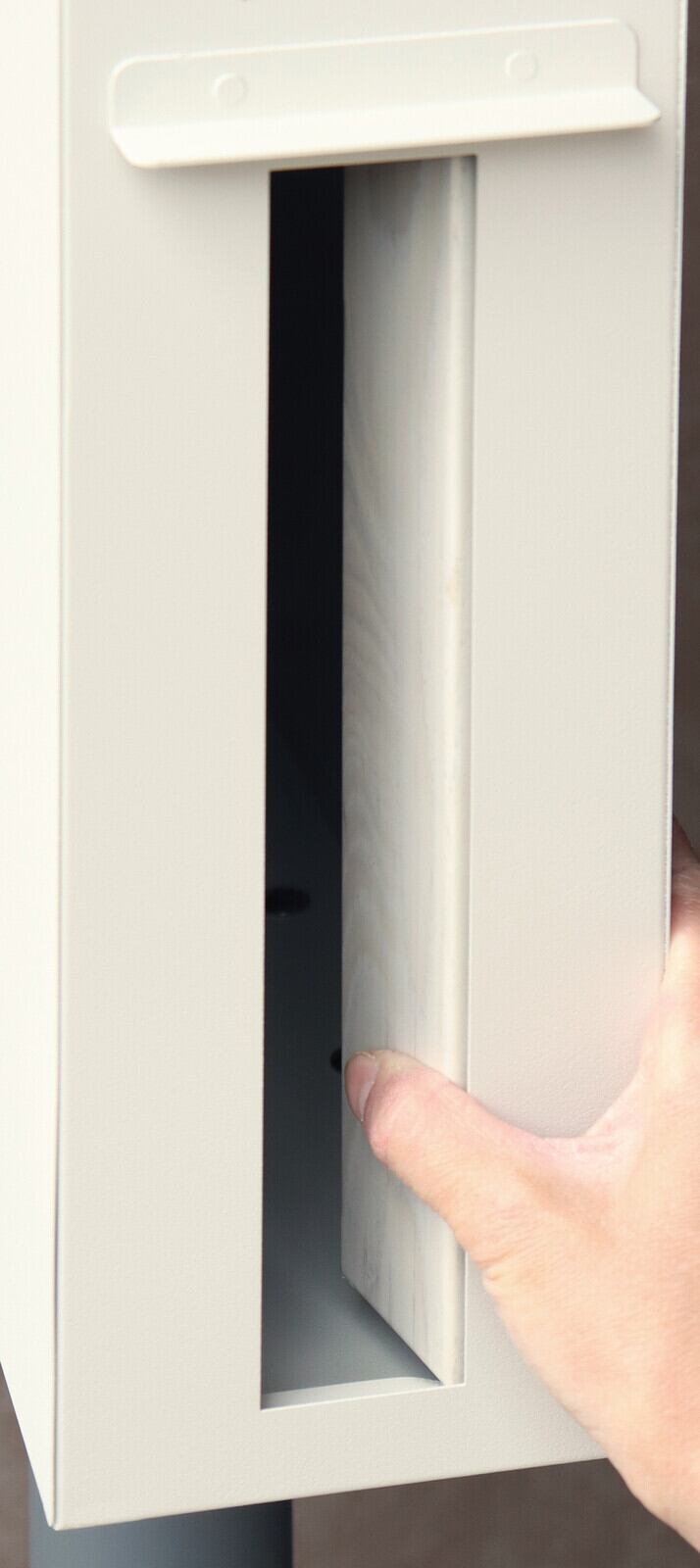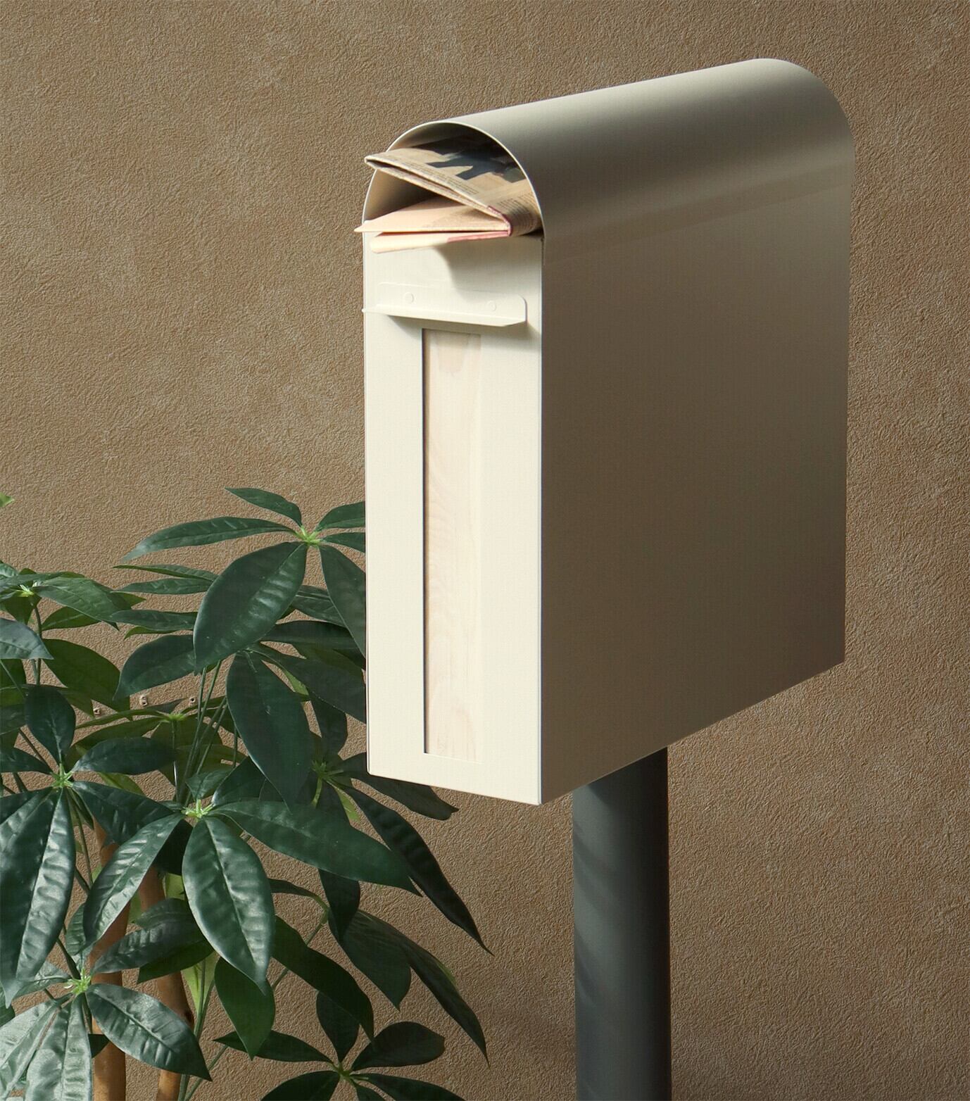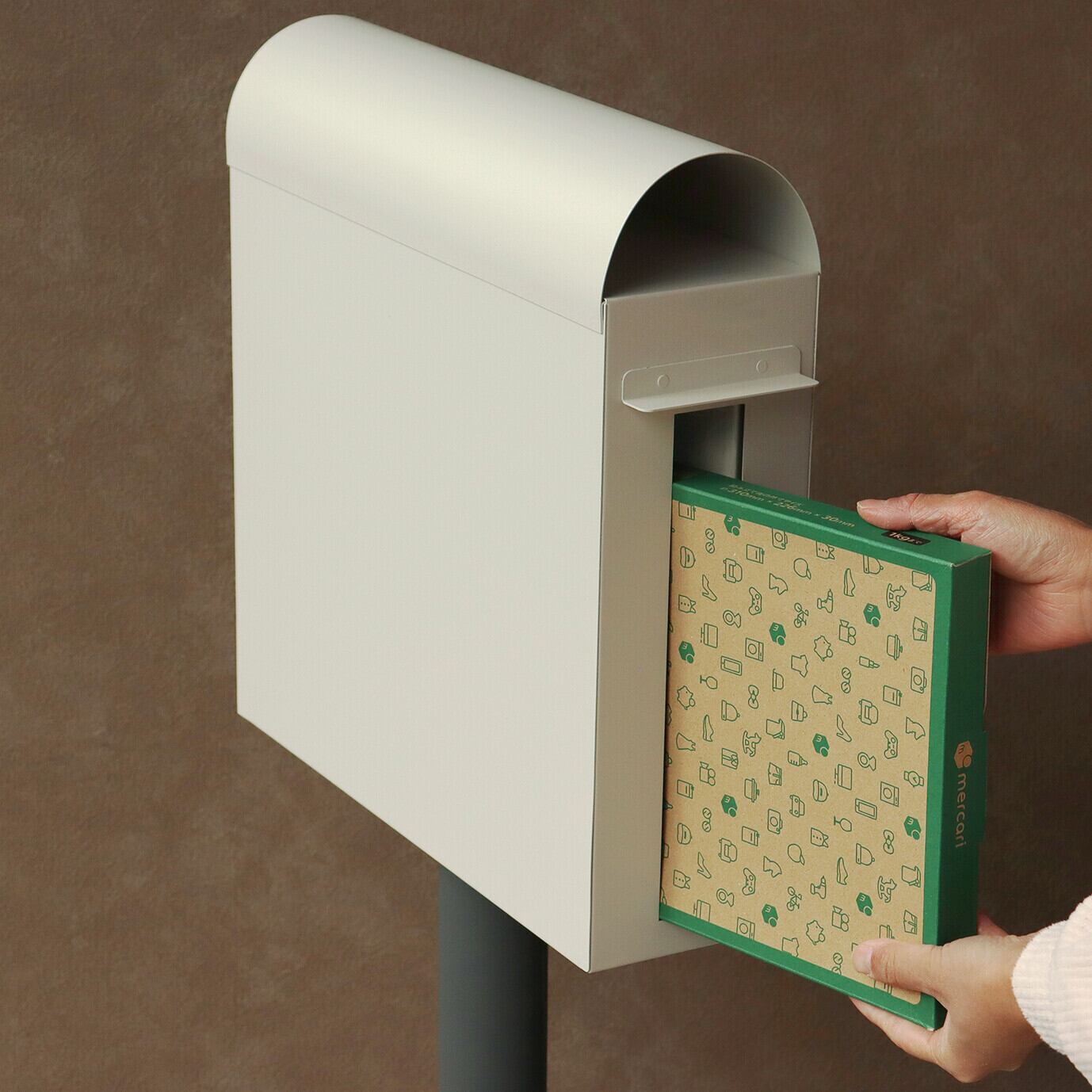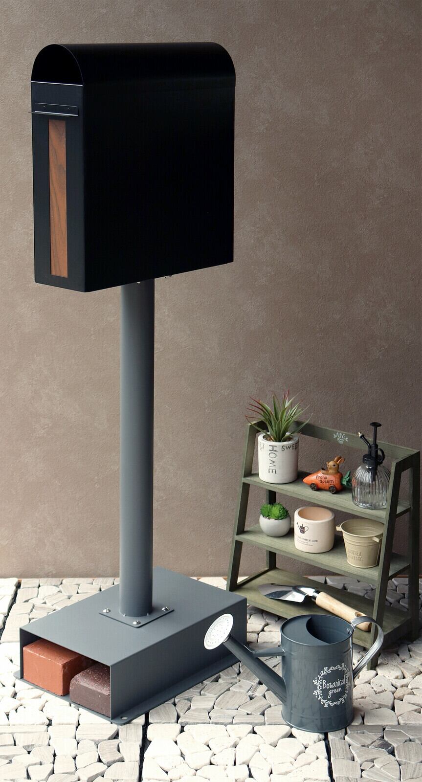 置くだけで使用可能なスタンド式で、壁掛け式とは異なり面倒な施工の手間がかかりません。ゆうパケットポストや、ネコポスが投函可能です。鍵付きなので防犯面に安心です(お客様で好きな番号へ変更できません)。新聞だけの取り出しができるため、便利に利用可能です。郵便物は、郵便入れ表面より投函し、裏面より取り出す仕様です。わざわざ表面に回らずに、郵便物を取り出し可能な為、便利にご使用頂けます。土台部は、標準サイズのレンガを最大3個入れることが可能です。カラーはシンプルカラーのブラックに、投函口にブラウン木目を使用したタイプと、くすんだベージュのグレージュに、投函口にホワイト木目を使用したタイプの2色からお選び頂けます。脚と土台部は、グレー色での仕上がりです。ガルバナイズド処理を施しているため、錆びにくくなっております。地面固定用のアンカーボルトが付属します。土台部にアンカーボルトを打ち込む穴があり、地面とポストを固定することも可能です。