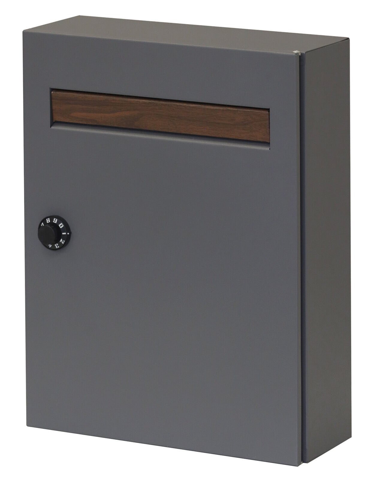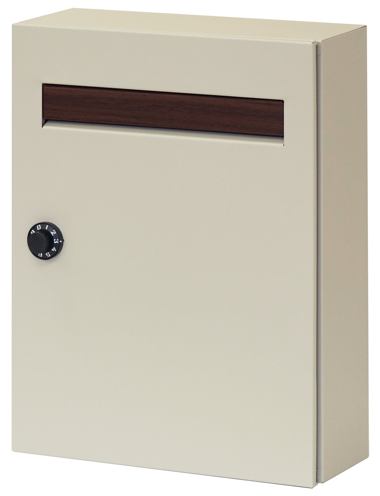 茶封筒角型2号やレターパックライトが投函可能です。ダイヤルロック付きなので防犯面に安心です(お客様で好きな番号へ変更できません)。商品前面扉からの郵便物の取出しになるので、片手で取り出しが可能です(片方の手が塞がっている際も取出し可能です)。カラーは、落ち着いた色合いのグレーとくすんだベージュのグレージュからお選びいただけます。また、投函口には相性の良いブラウン系の木目を採用しています。シンプルなデザインで、壁のデザインを選ばず合わせやすいポストになります。ガルバナイズド処理を施しているため、錆びにくくなっております。壁面に取付用のアンカー、取付ネジが付属しております。