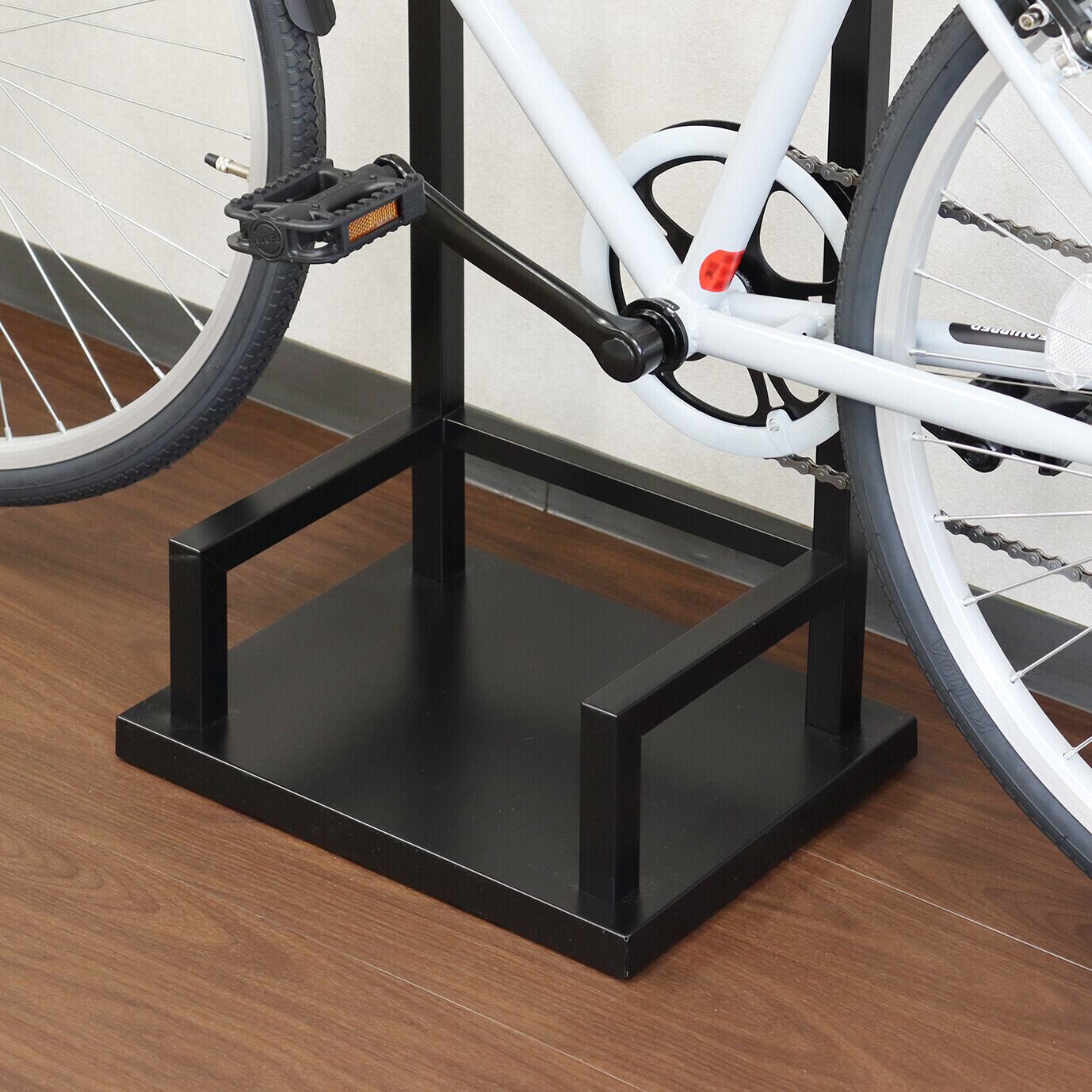 室内用の自転車スタンドで、大事な自転車を盗難や雨風による劣化から守ることが出来ます。お気に入りの自転車を室内で保管することが出来、室内空間の装飾となります。6段階で自転車スタンドの高さ調整が可能となります(2台分ともに)。台座部には重石が入っており、自転車をひっかけても安定感のある台座となります。チェーンとフックネジがついており、壁面と自転車スタンドを固定することが出来ます。自転車をかけるフック部は、保護チューブ付で大事な自転車を傷つけない仕様となります。本体部にワンポイントで木目プレートを使用しており、デザインのアクセントとなっております。2台用タイプなので、お気に入りの自転車を2台分、ディスプレイいただけます。スチール素材は粉体塗装で仕上げており、耐久性、防錆性に優れております。ブラックの鉄とブラウン木目のタイプと、ホワイトの鉄とホワイト木目のタイプの2色よりお選びいただけます。