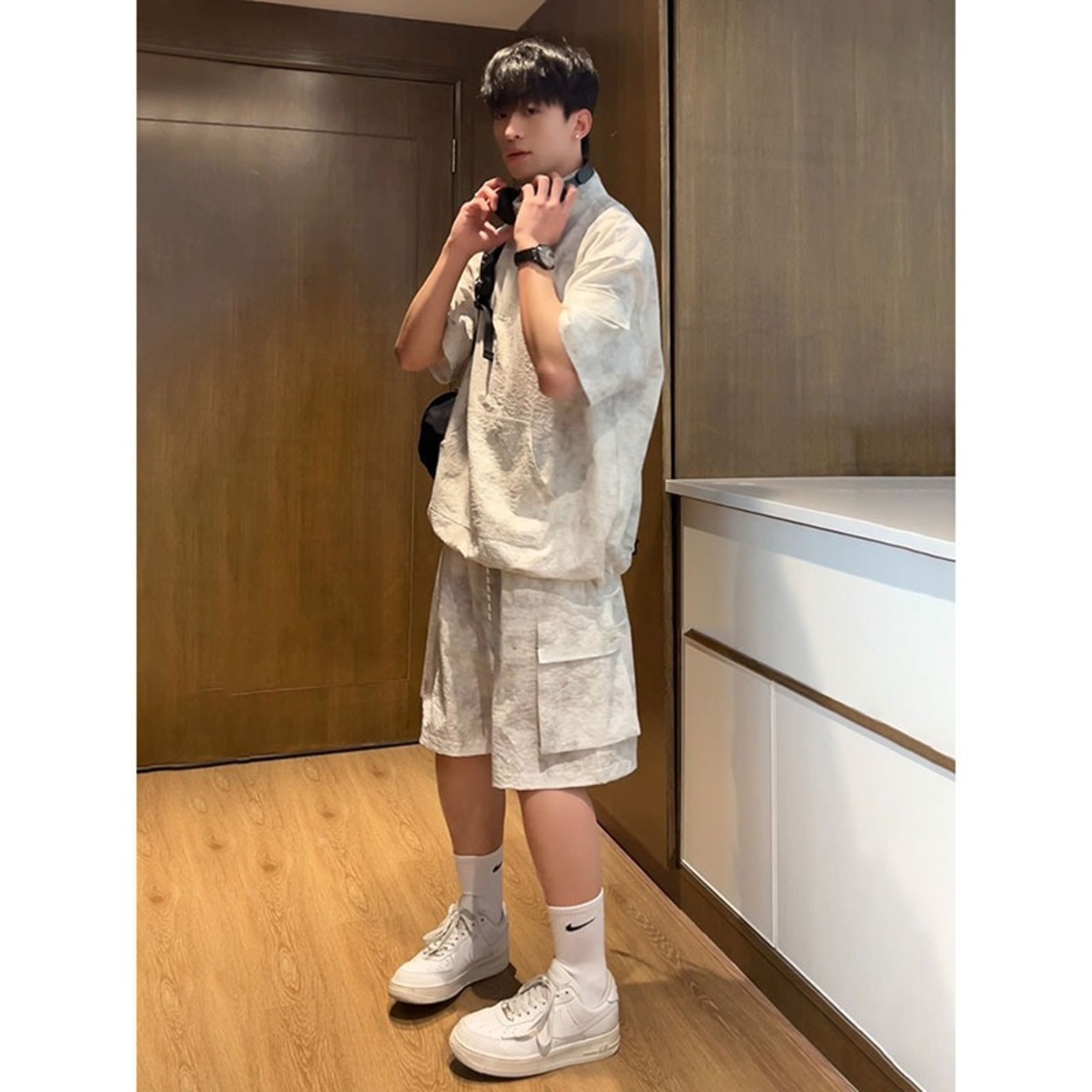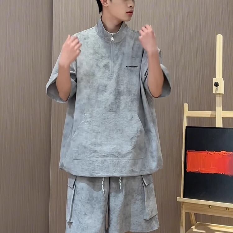 ●大人気の【大人気】夏のトレンドのタイダイカジュアルスポーツスーツメンズTシャツ半袖ショートパンツトレンドブランドウェアツーピーススーツ!高品質な素材を使用し、個性的なタイダイデザインが特徴です。暑い夏の季節でも涼しく快適に過ごせる一着です!