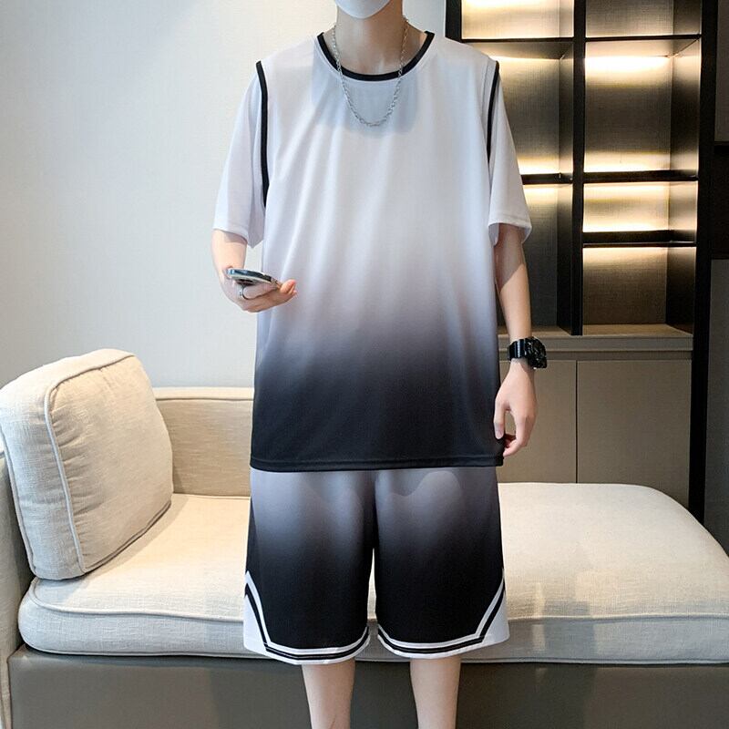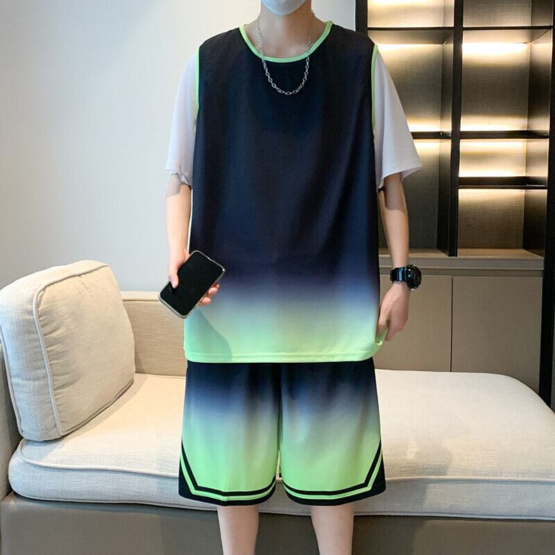 ●大人気の【2025年新作】メンズバスケットボールユニフォーム!ゆったりとしたグラデーションデザインが特徴のアイスシルク素材を使用した速乾性服で、快適にプレイできるスタイルです。通気性の良いショートパンツジャージツーピーススーツは、スポーツだけでなく日常のカジュアルスタイルにもぴったりです!