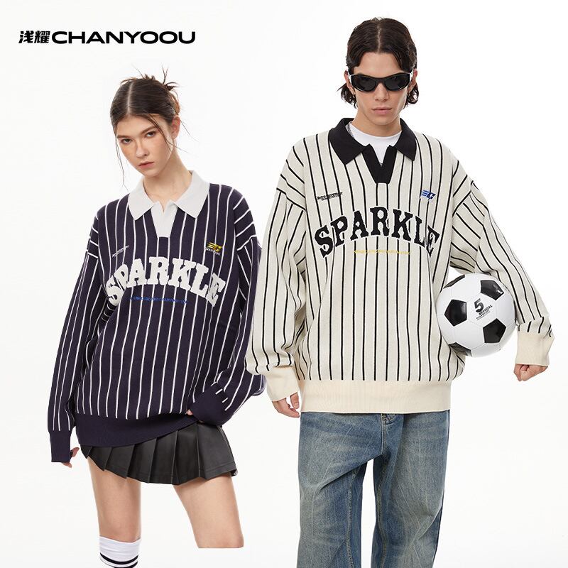 ●大人気の【秋冬】Qianyaoメンズファッション|アメリカンレトロポロカラーストライプセーター!このセーターは、ゆったりとしたデザインと際立つストライプ柄が特徴の魅力的なアイテムです。トレンド感満載のスタイルは、寒い季節のおしゃれに華を添えます!