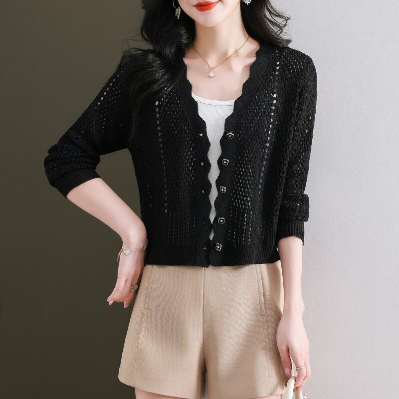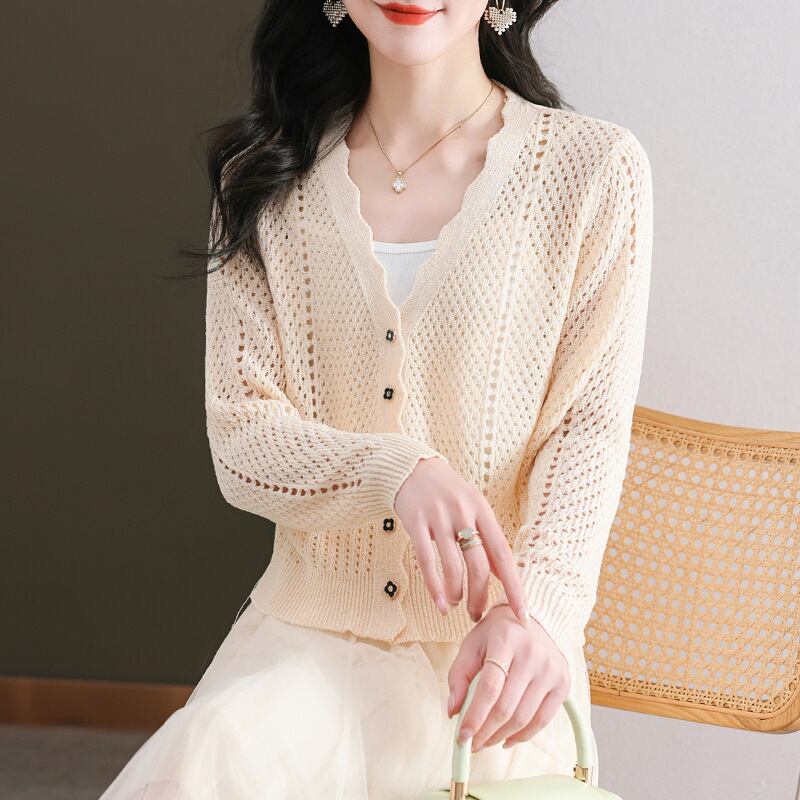 ●大人気の【2024年春新作】Vネックニットカーディガン!薄手のデザインで、軽やかさとおしゃれさを兼ね備えた必需品です。中空セーターコートとして、さまざまなスタイルにマッチし、寒暖差の激しい春の季節に最適です!