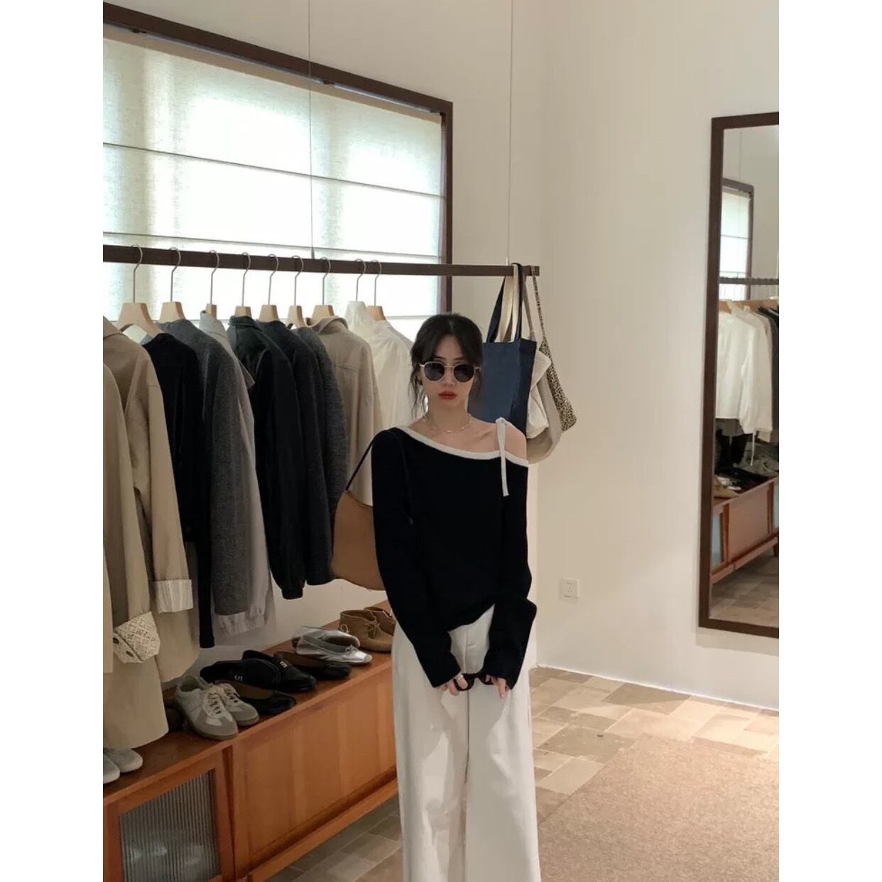 ●多様なスタイルで楽しめるこだわりのオフショルダーデザイン!ボトムスとのコーディネートも容易で、ジーンズやスカート、パンツと合わせてさまざまなスタイルを演出できます。このセーターが、あなたの秋のファッションをより一層引き立てます。
