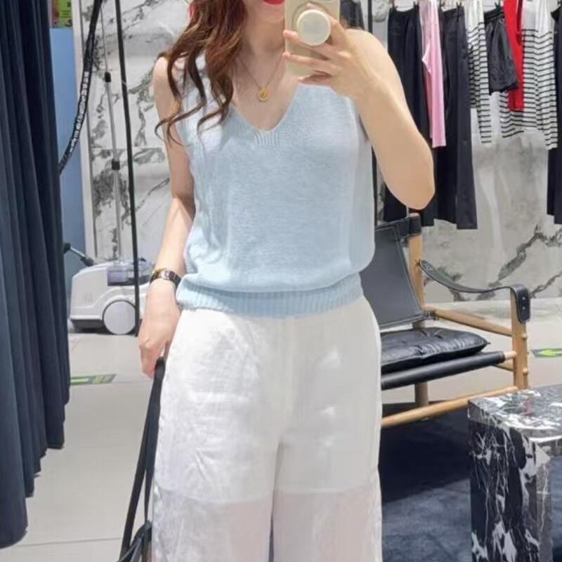 ●ニットベスト、夏ファッション、Vネック、リネンコットン、高品質、快適素材、トレンドアイテム、BIG SALE (ALLジャンルビッグセール)●新作Bargain SALE(バーゲン セール)