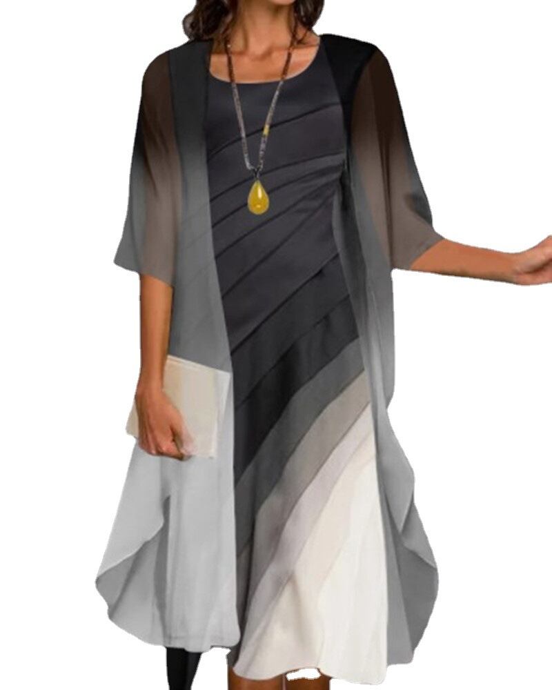 ●ワンピース、カラープリント、エレガント、グラデーション、2点セット、高品質、快適素材、トレンドアイテム、BIG SALE (ALLジャンルビッグセール)●新作Bargain SALE(バーゲン セール)