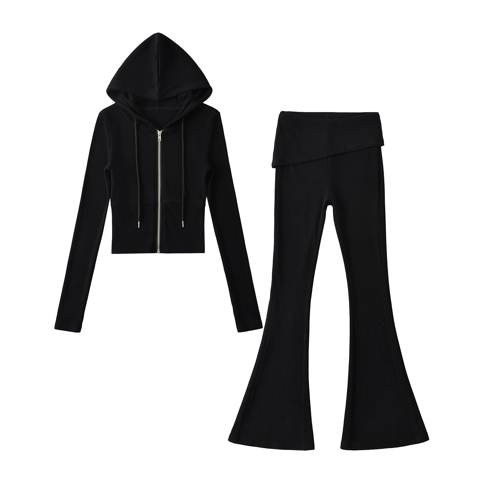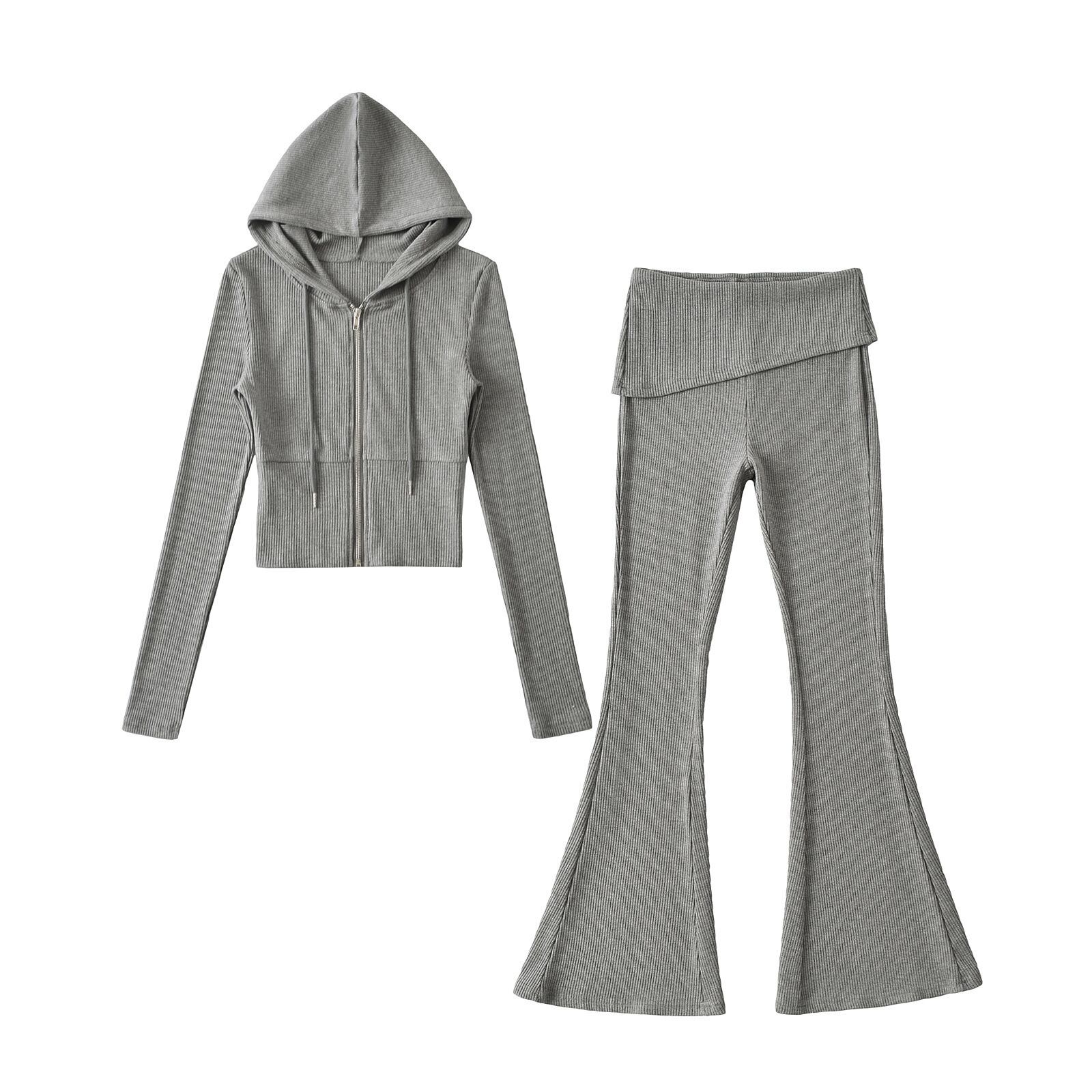 【大人気】 ヨーロッパとアメリカのニットジッパーカーディガン パーカージャケット ツーピース ヒップラップステッチファッショナブルなスリムフィットパンツ ホットガールスーツ | htgpartners