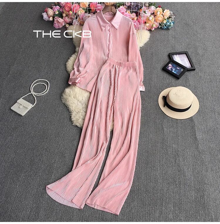 ●高品質な素材を使用したこのスーツは、柔らかな肌触りと優れた通気性を実現し、一日中快適に過ごせます。長袖シャツとハイウエストのドレーププリーツワイドレッグパンツの組み合わせが特徴で、リラックスした雰囲気を演出しつつ、体のラインを美しく見せます。カジュアルなお出かけからオフィスシーンまで、幅広く活躍します。