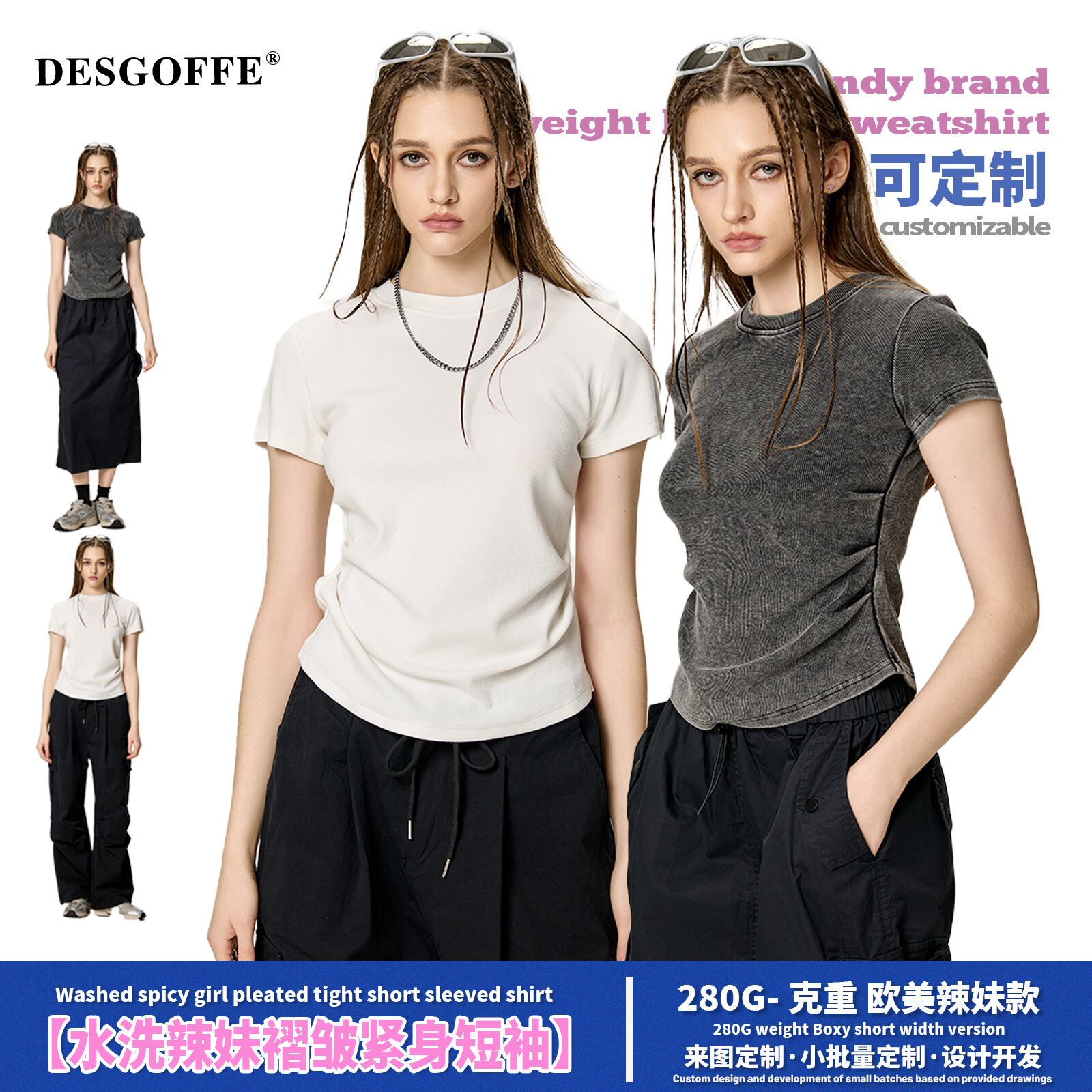 ●大人気の【レディースファッション 夏ファッションブランド ホットガール プリーツTシャツ レディース 280g ウォッシュ加工 スリミング ラウンドネック トップス】!このプリーツTシャツは、洗練されたデザインと快適な着心地を両立させたアイテムです。夏の爽やかな雰囲気を引き立てつつ、美しいシルエットを演出します!