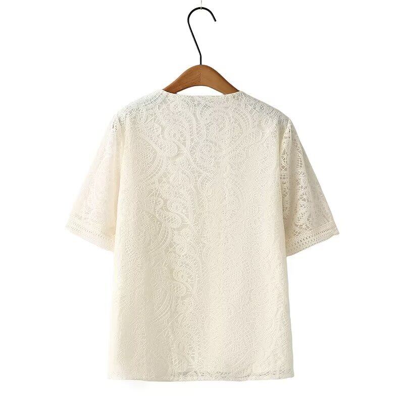 ●多様なスタイルで楽しむためのこだわりのデザイン!この半袖シャツは、単体でも他のスタイルとの組み合わせがしやすく、どんなシーンでも活躍します。中空レースのディテールが、あなたの夏のファッションにリラックス感と華やかさを添える理想の選択です。