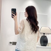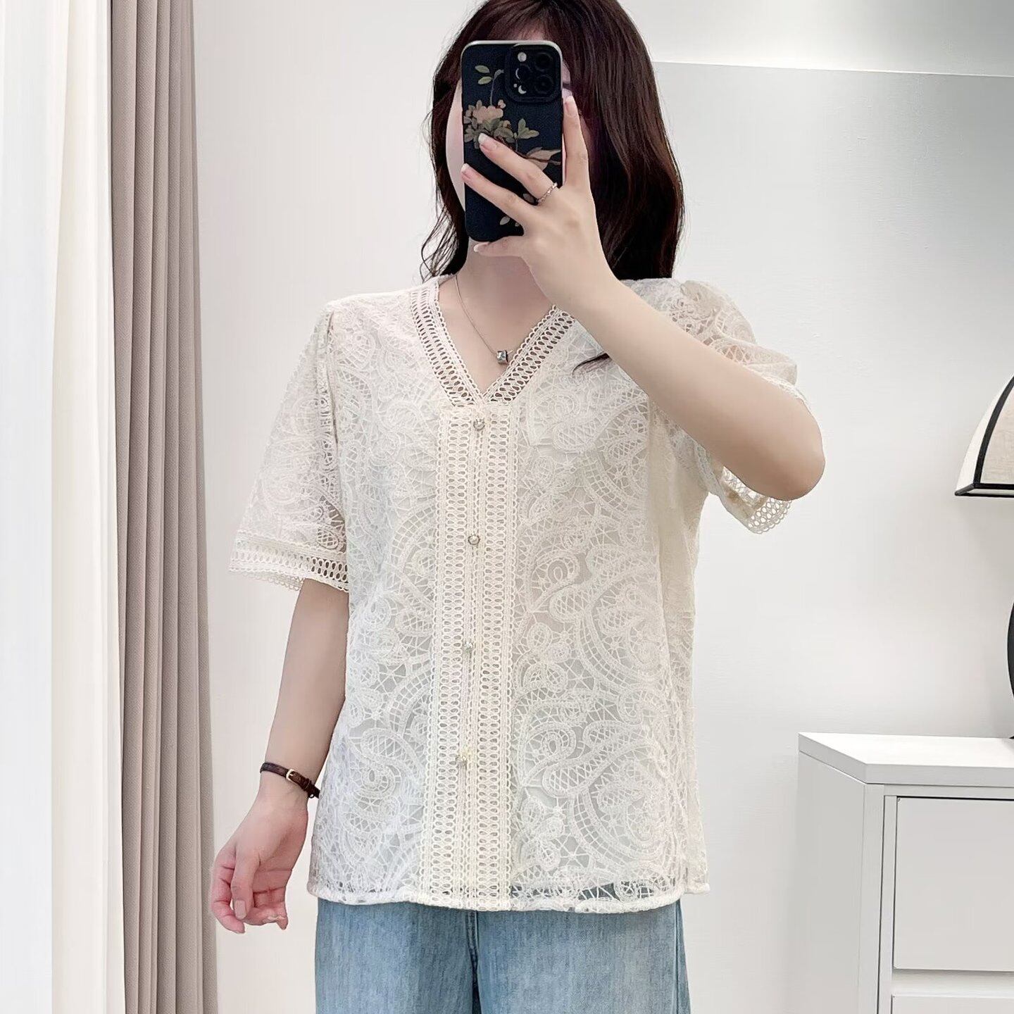 ●夏ファッション、レディース、プラスサイズ、中空レース半袖シャツ、エレガントなデザイン、リラックススタイル、高品質、BIG SALE (ALLジャンルビッグセール)●新作Bargain SALE(バーゲン セール)