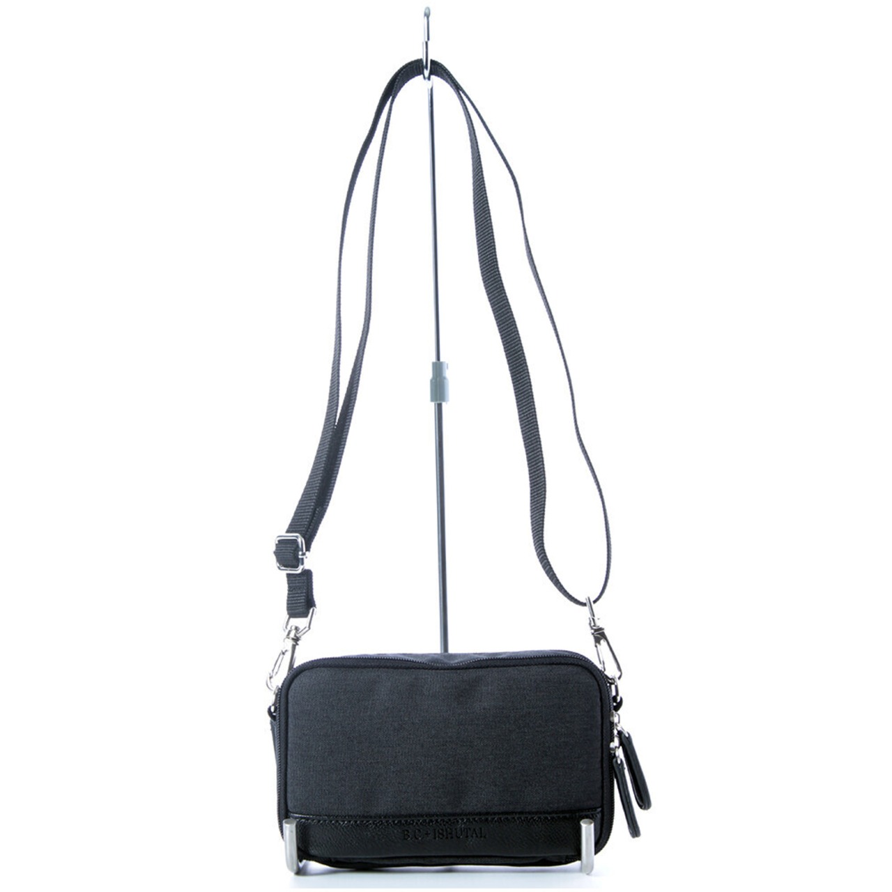 水に強く、軽量な杢ポリエステル素材と合皮を組み合わせた機能性に優れたミニショルダーバッグ