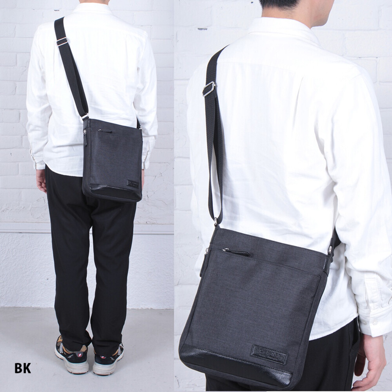 縦型A5スクエアショルダーバッグです。 メイン素材は表情のある杢調ポリエステル素材にはっ水加工を施しています。 付属には濃淡・シボ感あるリアルレザーの様なPU合皮を合わせてタウンユースに落とし込んでいます。 前面に【上向きファスナーポケット×1】がありティッシュやハンカチなど日用品の出し入れが楽々です。 本体メインルームファスナーはカジュアルな10番ファスナーを使用し内装は背面にタブレットなどの収納に便利なウレタンポケット、前側に【ファスナーポケットx1】【2分割ベタポケットx2】があり、小物整理に最適配置です。 背面側にも【ファスナーポケット×1】がございますので、貴重品などの出し入れにも安心です。 付属のショルダーストラップはサイズ調整可能です。 ウスマチタイプですがボトムファスナーを拡げれば容量アップに対応します。 ちょっとしたお出かけから、旅行のサブバッグとして幅広く使える、コスパの良いアイテムです!
