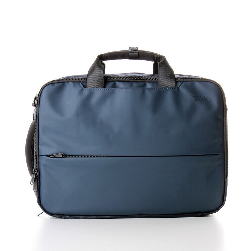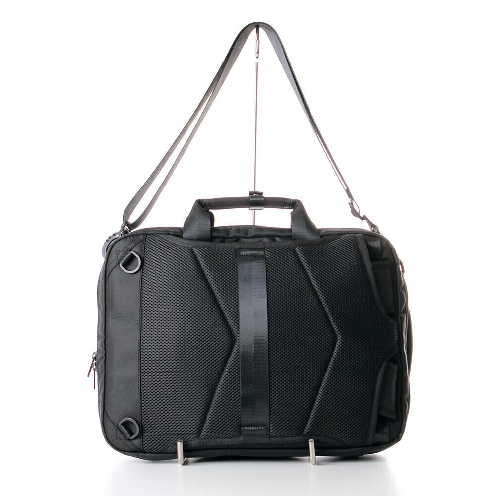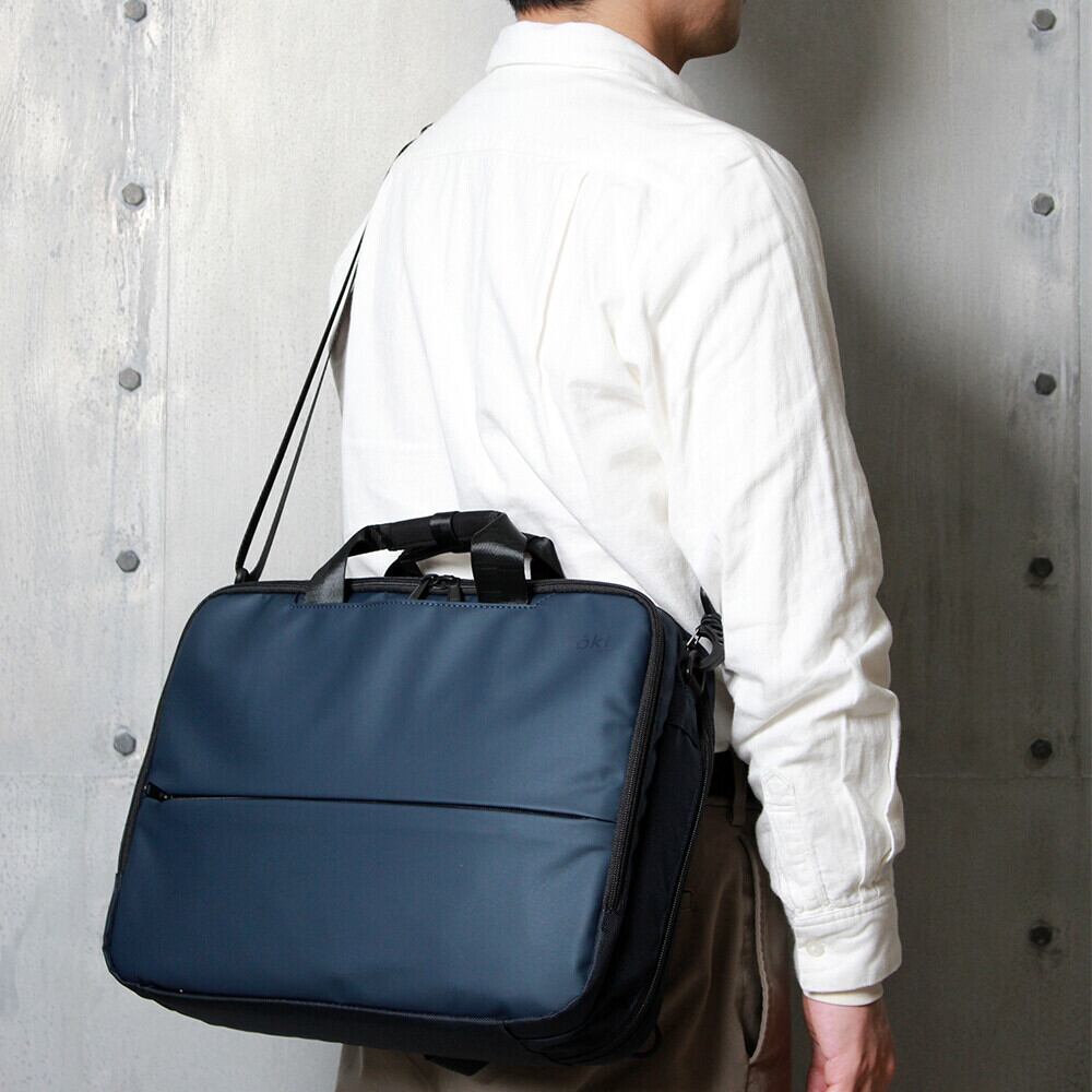 リュックとして持っても、ブリーフ持ちしてもショルダー持ちしてもどのような持ち方をしても、スマートさが崩れないようにデザインしました。使わないときの持ち手はすぐに収納できるように前後に収納ポケットを搭載しており、リュックの肩ベルトの取り外しが簡単に出来る様に、ナスカンは開閉のしやすいものをチョイスしております。ブリーフの持ち手はネオプレーン素材で柔らかく持ち心地もアップしております。前面のポリウレタン素材は水に強く、軽量で、本体のナイロン素材も非常に頑丈に織られております。使用されている外面のファスナーはテープが撥水性の高いYKKのコーティングテープになっておりますので、スマホなどを入れても安心です。2層になっている内装も内部のポケットが8個プラスペン差し2個と充実しており、前面下部のポケットには折り畳み傘もぴったり収納出来ます。その際に浸水を防ぐように、内装が水に強い素材となっております。キャリーバッグのお供にも出来る様にと、キャリーバーも搭載しております。様々なシーンで使える多機能スマート3ウェイリュックです。