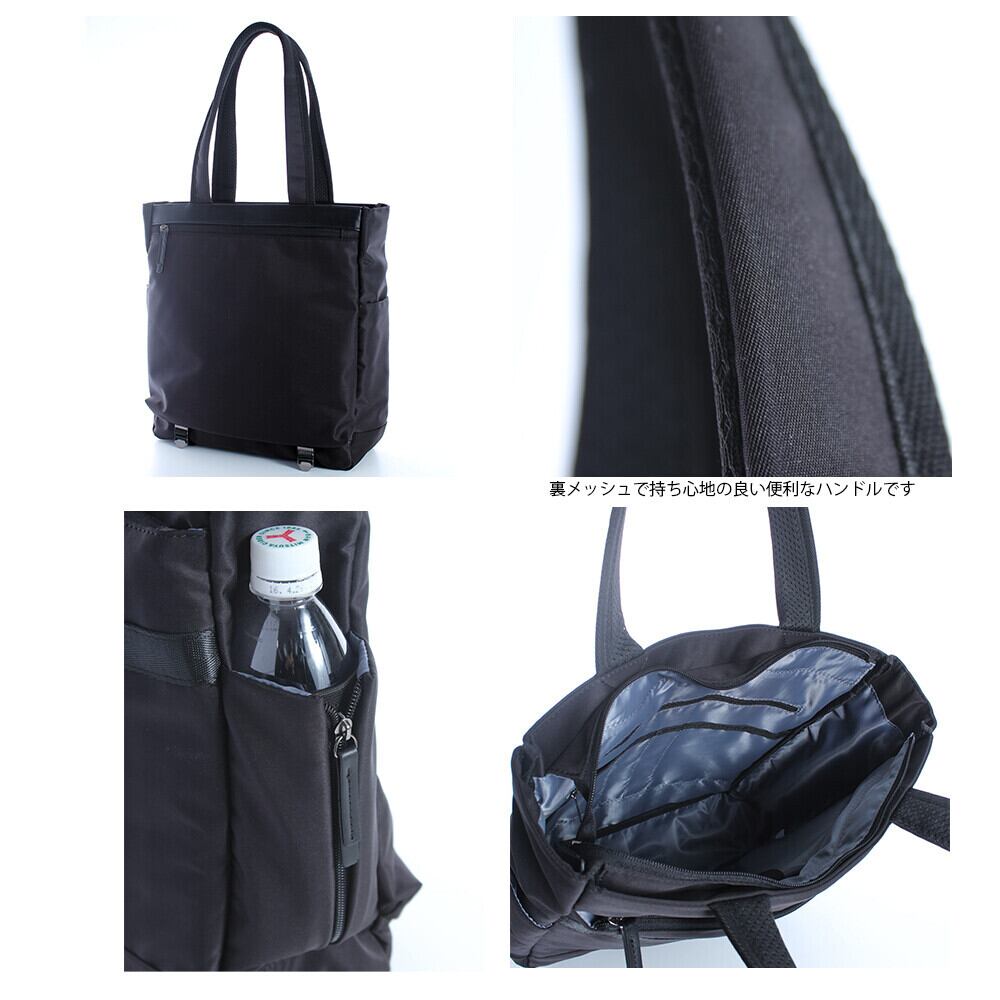 撥水加工の施された高密度ツイルポリエステル素材で軽量で持ちやすい仕様になっています。