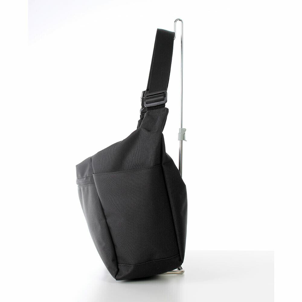 この舟形ショルダーバッグは、裏PU加工が施された撥水ポリエステル素材で雨の日なども安心してお使い頂けます。前面の大き目なファスナーポケットが特徴的で、中を開けると背面側がメッシュになっているのでメインルームから中に何が入っているかを見易いような仕様になっているので、探し物があるときメイン収納部を確認していただければ、そこから前ポケットの中身もすぐに確認していただくことが出来ます。両サイドにオープンポケットが2個ついていてペットボトルや雨傘も入れていただけます。長さ調節可能なバックル付きのショルダーテープを搭載しておりバックルのおかげで装着が簡単です。内装にはファスナーメッシュポケットが1個付いているので、整理整頓し易い仕様になっています。引手のシリコンを先に加えた加工も、スポーティでスタイリッシュな印象を与えます。普段使いやワンマイルコーデにもお使いいただける汎用性も備えています。