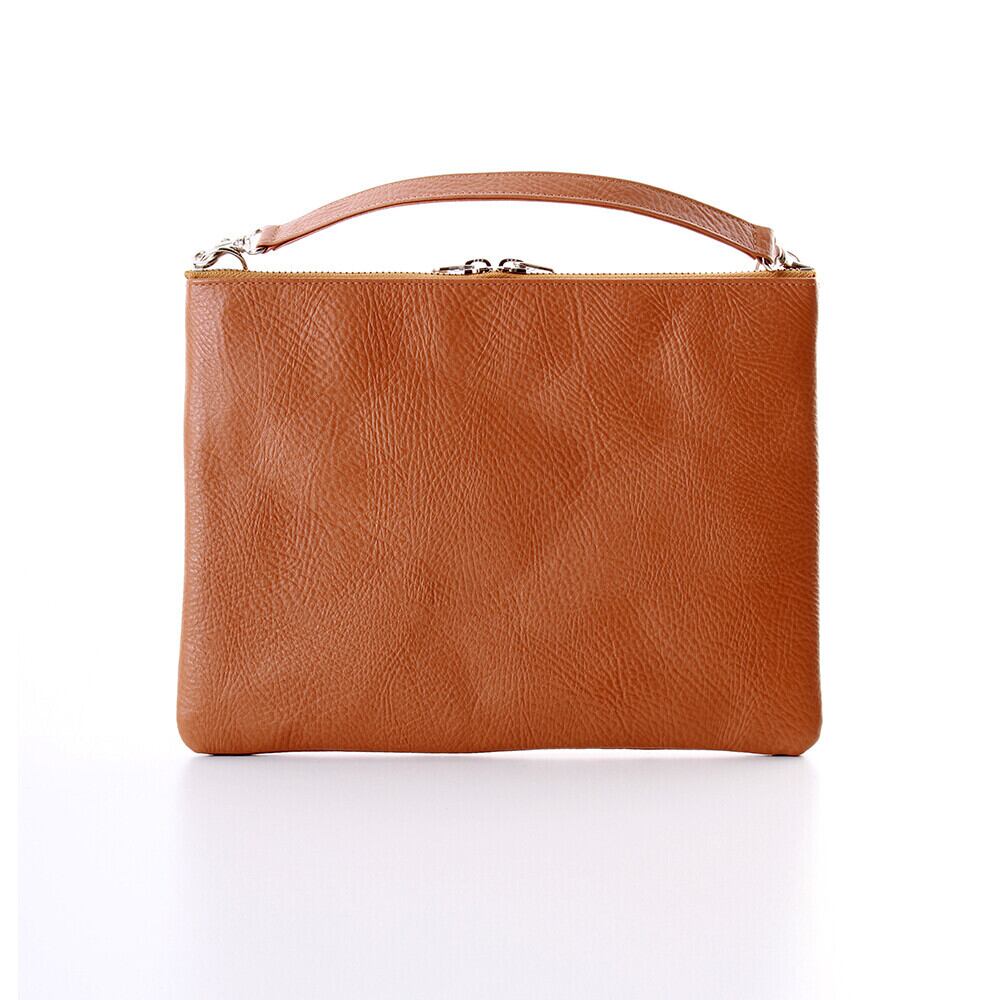この鞄を持ってついついお出かけしたくなるような、デザインを目指して色鮮やかな牛革を使用し形もシンプルに仕上げました。牛革は国産で、牛ステアと呼ばれる革で、革の厚み(1.1〜1.3mm)がある分、強度に優れており、キメが原皮一枚の中でバラツキが少なく比較的揃っているので、表面のソフト型押しの風合いも楽しんでいただけます。鞣し方もクロム鞣しという弾性が高く傷つきにくい手法で仕上げられておりますので、旅行など外出が多い肩でも安心してご使用いただけます。カラー展開も豊富で、コーディネートやパーソナルカラーによってもベストなカラーを選んでいただけるようにしております。またこちらの製品は、大阪の靭公園近くにアトリエを構えている職人さんの一つ一つ手作りのアイテムとなっております。工業生産では表現できない独特のクラフト感ある仕上がりで、高い技術力と臨機応変な思考から産み出される製品は高品質な仕上がりとなっております。デザインはおおまかにはミニマルな仕上がりで出来るだけ無駄を削いで、使いやすさに着目しました。また、持ち手は短い持ち手と、肩掛け出来るロングショルダーを搭載することで、様々なオケージョンに対応できるように致しました。金属部分もニッケルを使用しデザインに、統一感を持たせ、ファスナーテープも本体素材とマッチングするように組み合わせられております。細部にこだわりが見られるまさに職人技のアイテムを是非ご覧くださいませ。