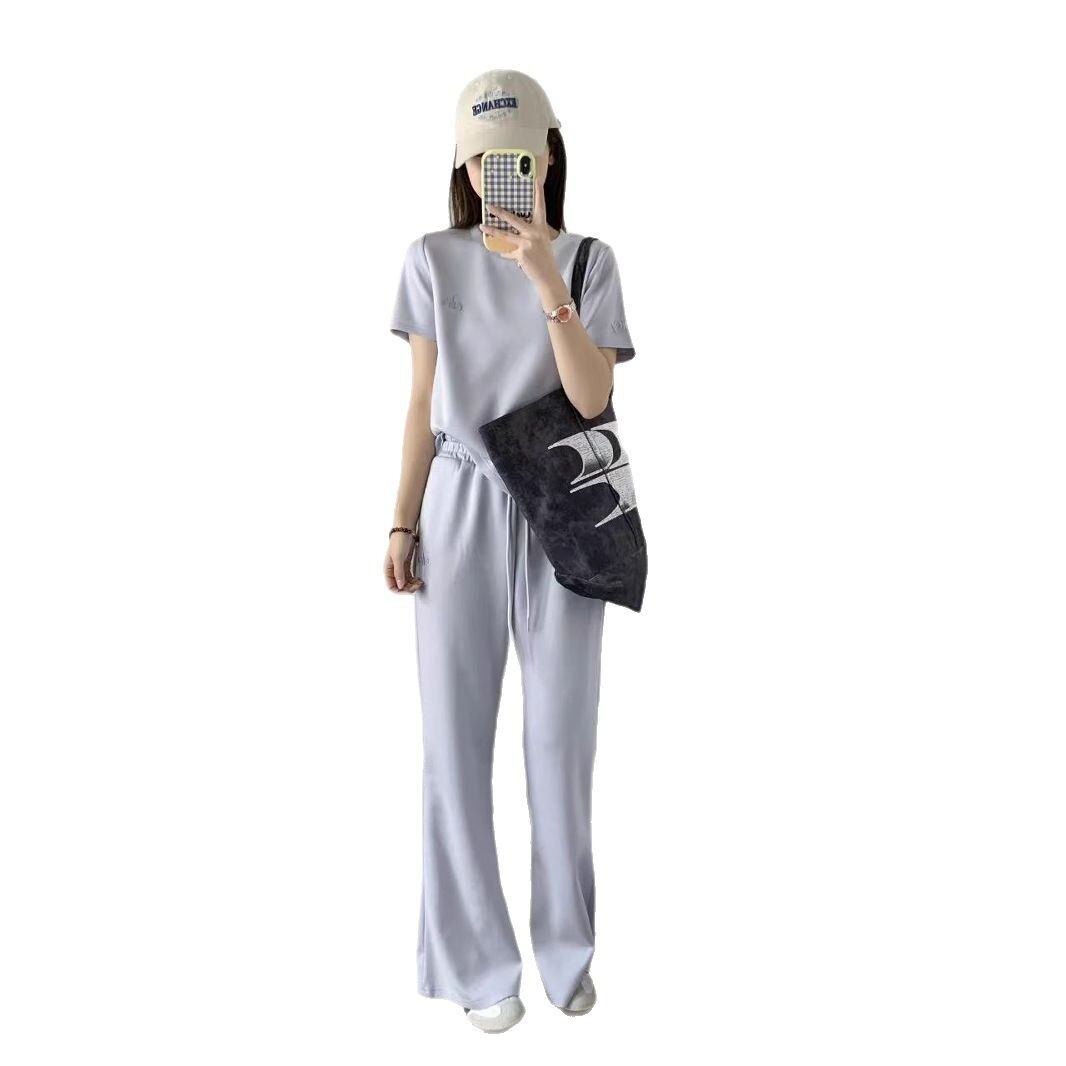 【大人気】新作 万能ラウンドネック 半袖Tシャツ+カジュアルパンツ ツーピースセットレディースファッションスポーツスーツの登場です!この魅力的なセットは、ラウンドネックの半袖Tシャツとカジュアルパンツの組み合わせが特徴で、夏のお出かけやスポーツにぴったりのアイテムです。リラックスしたシルエットで、デイリースタイルからアクティブな場面まで幅広く活躍します!