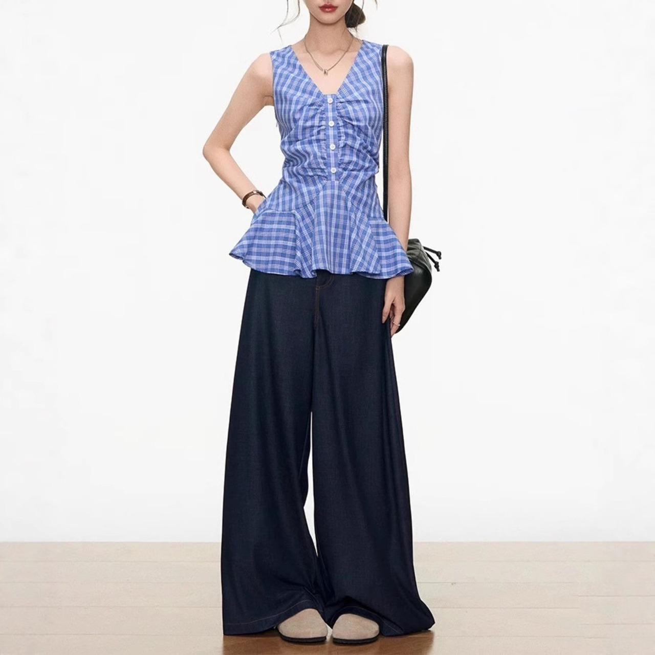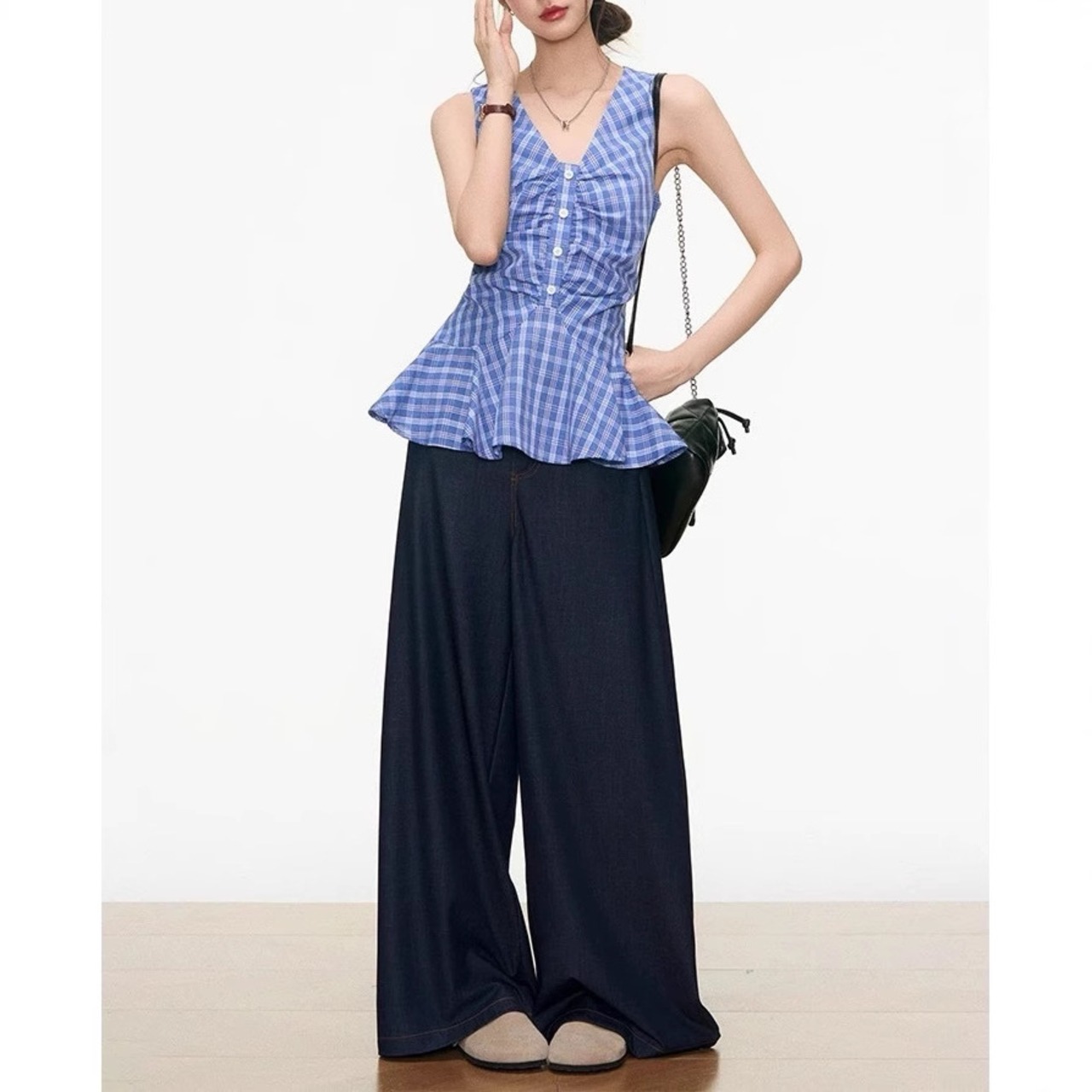 【大人気】ルターネック Vネック サスペンダー ウエスト トップス レディース 通勤 ブルー チェック柄 カジュアル ファッションの登場です!この魅力的なトップスは、トレンド感満載のルターネックデザインとブルーのチェック柄が特徴で、通勤からカジュアルな日常使いまで幅広く活躍します。サスペンダーが施されたウエストラインが、スタイルを美しく引き立て、どんなコーディネートにもマッチします!