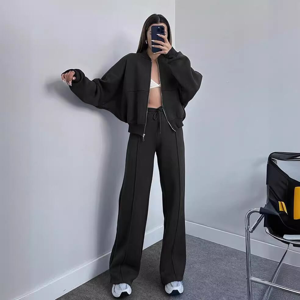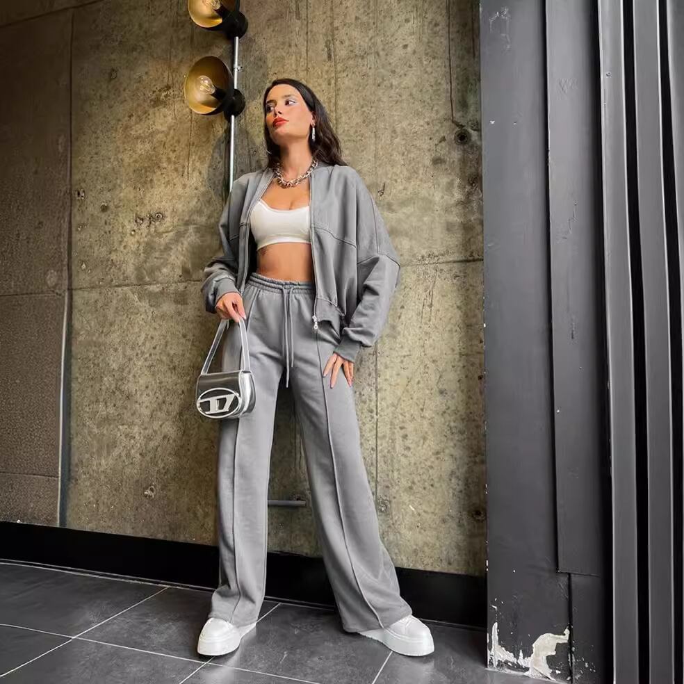 【大人気】ヨーロッパとアメリカの衣 春の新作 ファッションスーツ 無地ジッパーカーディガンストレートパンツスーツの登場です!この魅力的なスーツは、シンプルで洗練されたデザインが特徴で、春の訪れと共に新しいファッションを楽しむことができます。ジッパーカーディガンとストレートパンツのコンビネーションは、どんなシーンにもマッチするスタイリッシュな選択肢です!