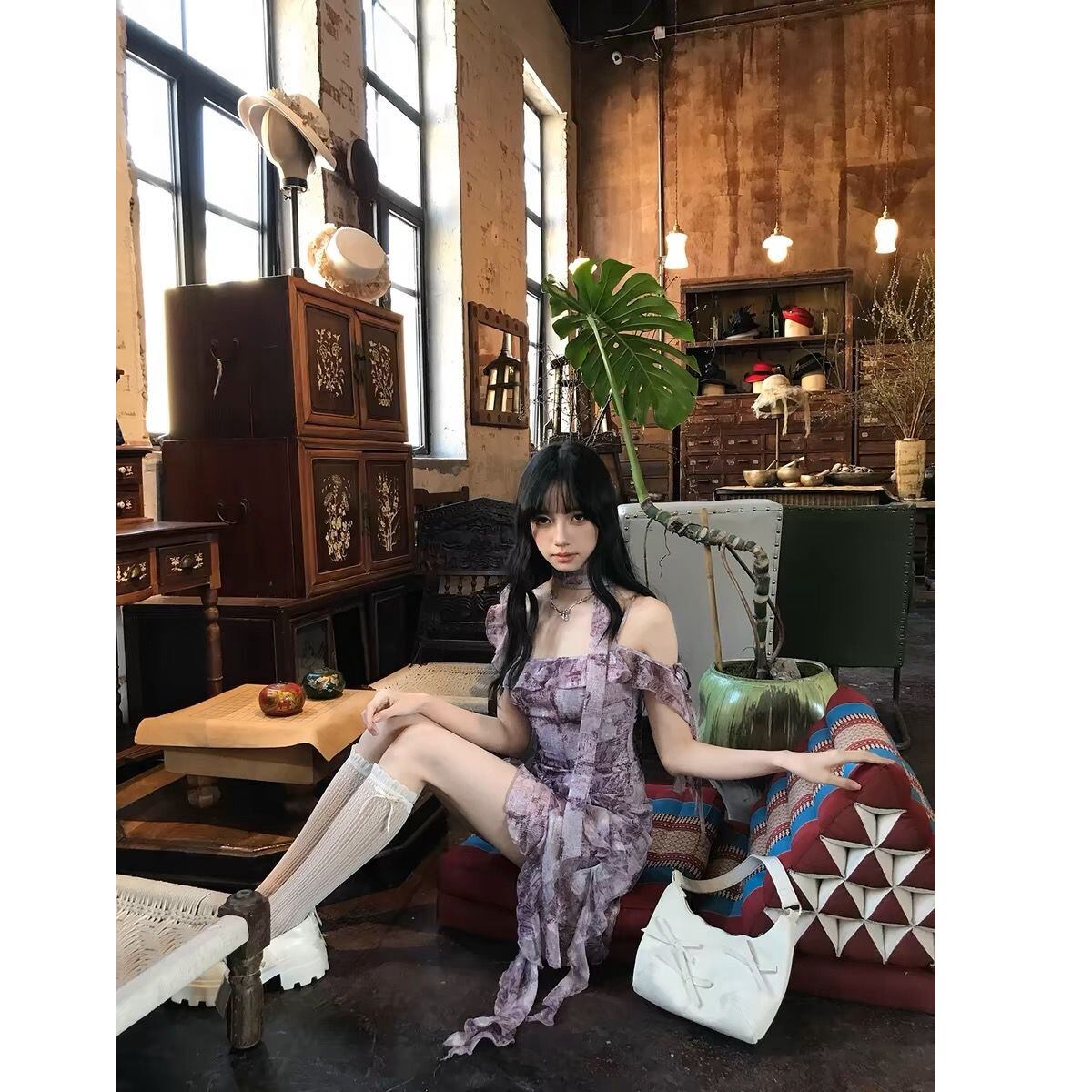「フリルオフショルダー 不規則な紫色のサスペンダードレス」が登場しました!流行に敏感なあなたにぴったりなこのドレスは、甘辛スタイルが見事に融合したアイテムです。特に、フリルのオフショルダーデザインが贅沢な華やかさを演出し、女性らしさを一層引き立てます。