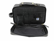 大きく開く前室はペン差や携帯電話ポケットなど、整理がしやすく中のものが一目瞭然です。メインコンパートメントはオープンポケットが1つのシンプルな内装なので、ポイポイ荷物を入れることが出来ます。背面にはホック式のオープンポケットが付いているのでチケット類の整理に役立ちます。