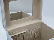 整理に重宝する、中皿と、小物入れのポケットも付いて、すっきり収納。ふたの裏側には鏡も付いているので、そのままお化粧もOKです。