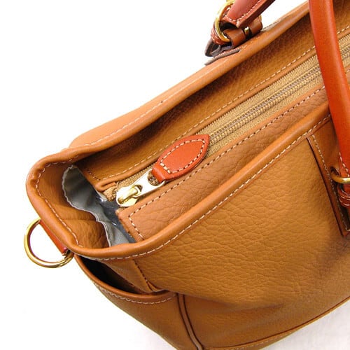 底には本体を傷や汚れから守る鋲が4つ付いています。トートタイプなのでどんどん荷物を詰めてお出かけできます。もちろんいつも手にするハンドルや、ファスナーの引き手は本革製で使うほどに手になじんできます。ショルダーベルトも付いているので荷物が重いときでも楽に移動できます。