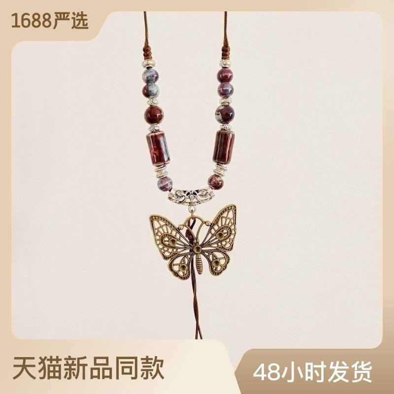 魅力がギュッと詰まった、【大人気】貴妃蝶エスニックス タイルセラミック ロングセーターチェーンの登場です!古代中国の美を思わせるデザインで、優雅な印象を与えます。繊細な貴妃蝶が描かれたペンダントは、どんなスタイルにもさらなる個性を加えてくれる一品です。