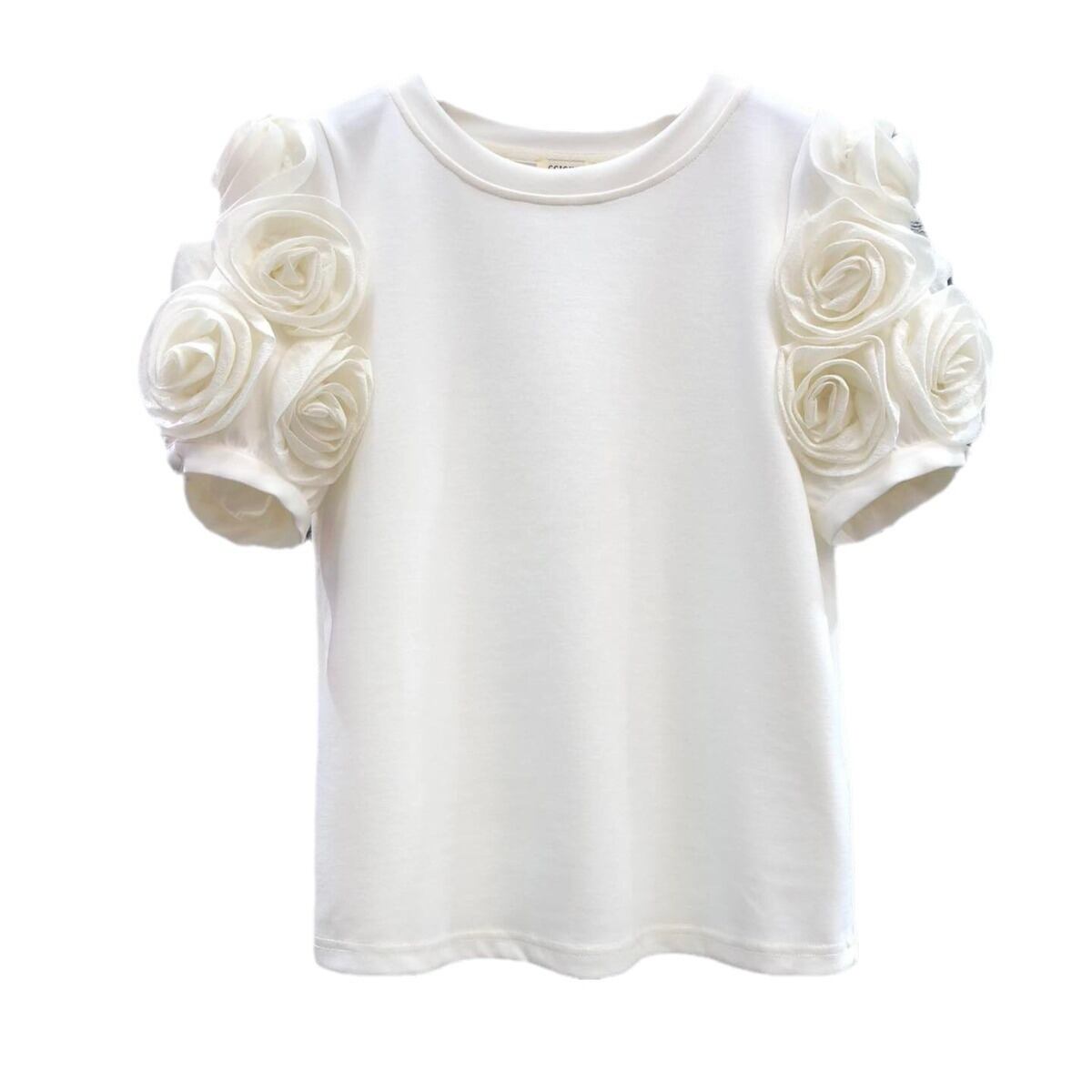 トップスタイプ/立体花デザイン半袖Tシャツ