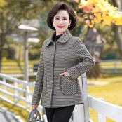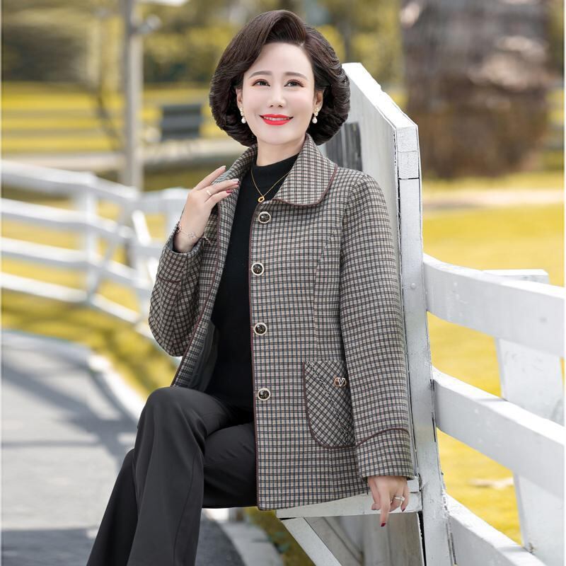 【大人気】小さなスタイル 母の春と秋のファッショナブルな小さなスーツのご案内です!このエレガントなチェック柄の短いウールのコートは、スタイリッシュなデザインと実用性を兼ね備えており、中年女性の魅力を引き立てる一着です。