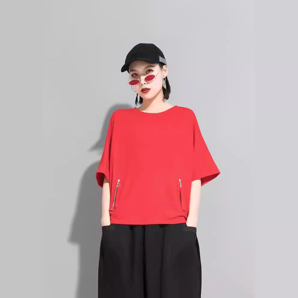 【大人気】新しい半袖 Tシャツ レディース ヨーロッパ 夏服 ポケットジッパールーズ 個性シック五分袖トップスのご案内です!このトレンディな半袖Tシャツは、夏のコーディネートに欠かせない必須アイテムです。